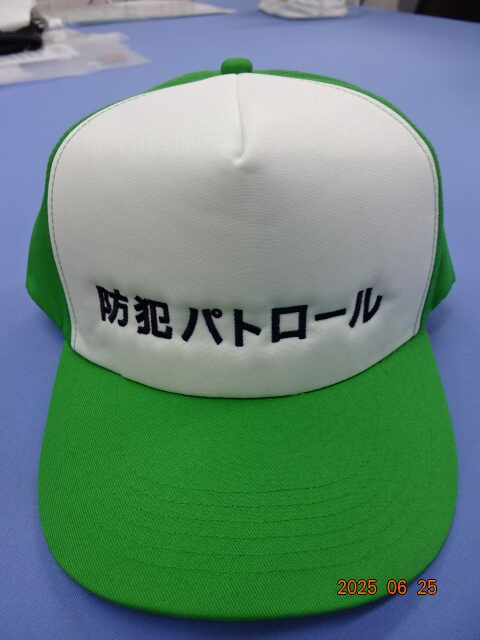「防犯パトロール標識」オリジナルキャップ制作事例
