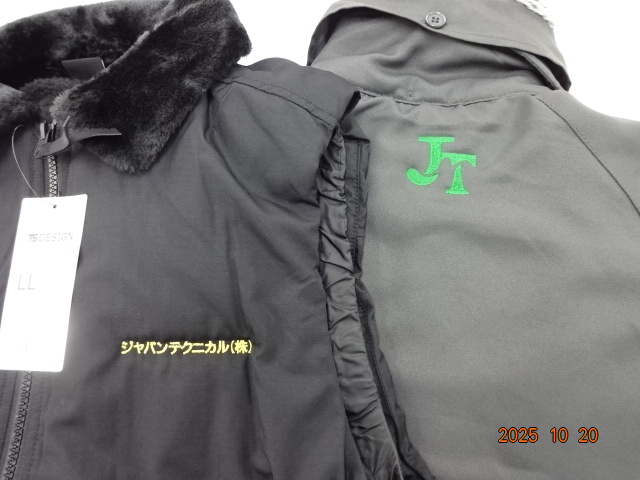 「ジャパンテクニカル(株)」オリジナルブルゾン制作事例 商品カテゴリ: 3 商品: 411 利用シーン: 加工位置: 刺繍(左胸・背中衿下) 加工サイズ: 左胸:50mm×45mm、背中衿下:80mm×8mm 加工方法: カメオカからのコメント: