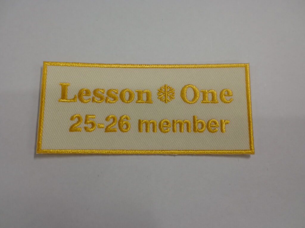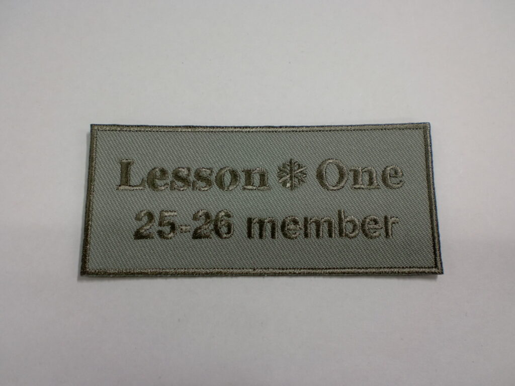「Lesson*One 25-26member」オリジナル刺繡ワッペン制作事例 商品カテゴリ: 277 商品: 768 利用シーン: 加工位置: 刺繍 加工サイズ: 90mm×40mm 加工方法: カメオカからのコメント: