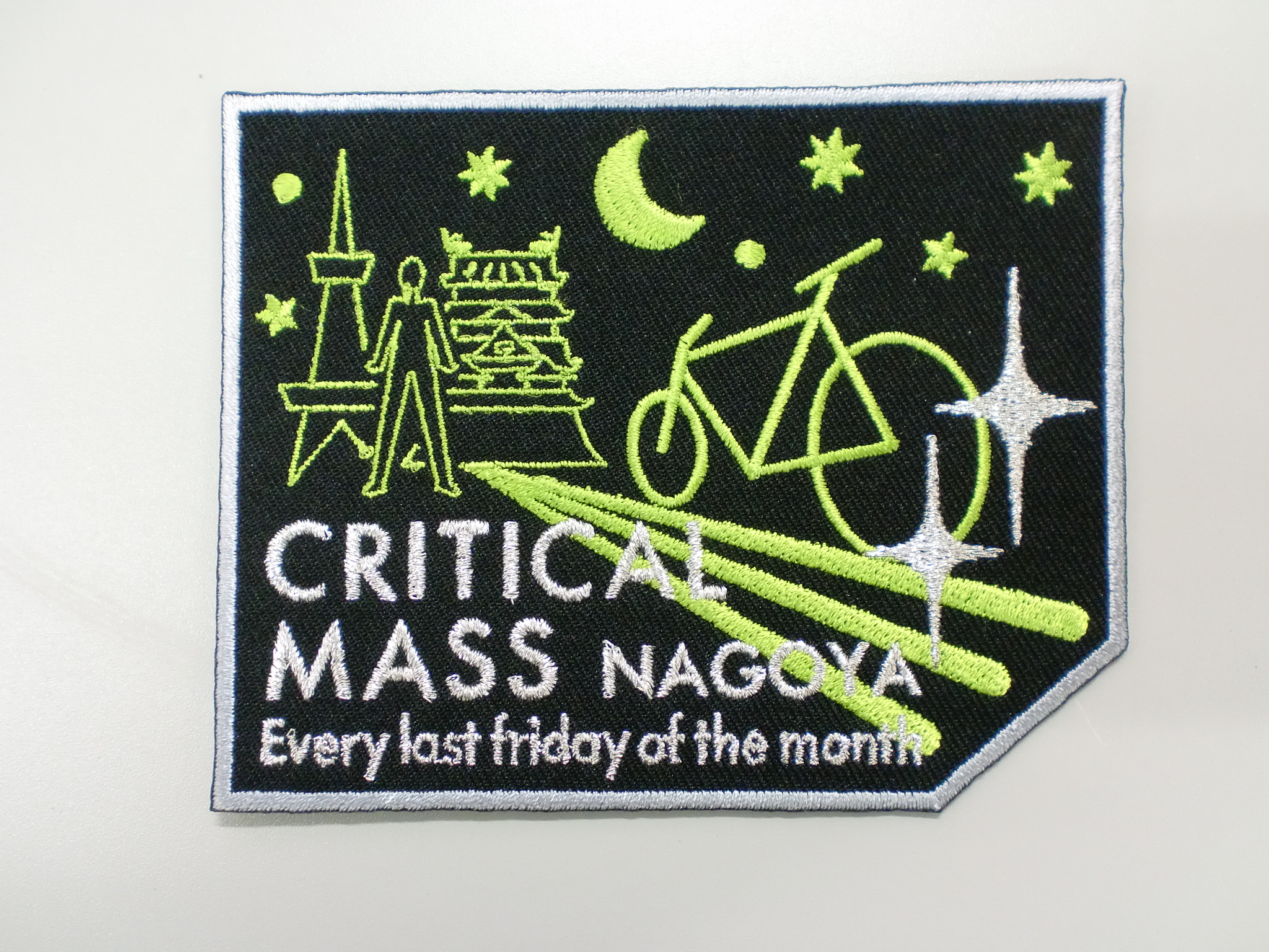 「CRITICAL MASS NAGOYA」オリジナル刺繡ワッペン制作事例 商品カテゴリ: 277 商品: 768 利用シーン: 加工位置: 刺繍 加工サイズ: 横:100mm×縦:80mm 加工方法: カメオカからのコメント: