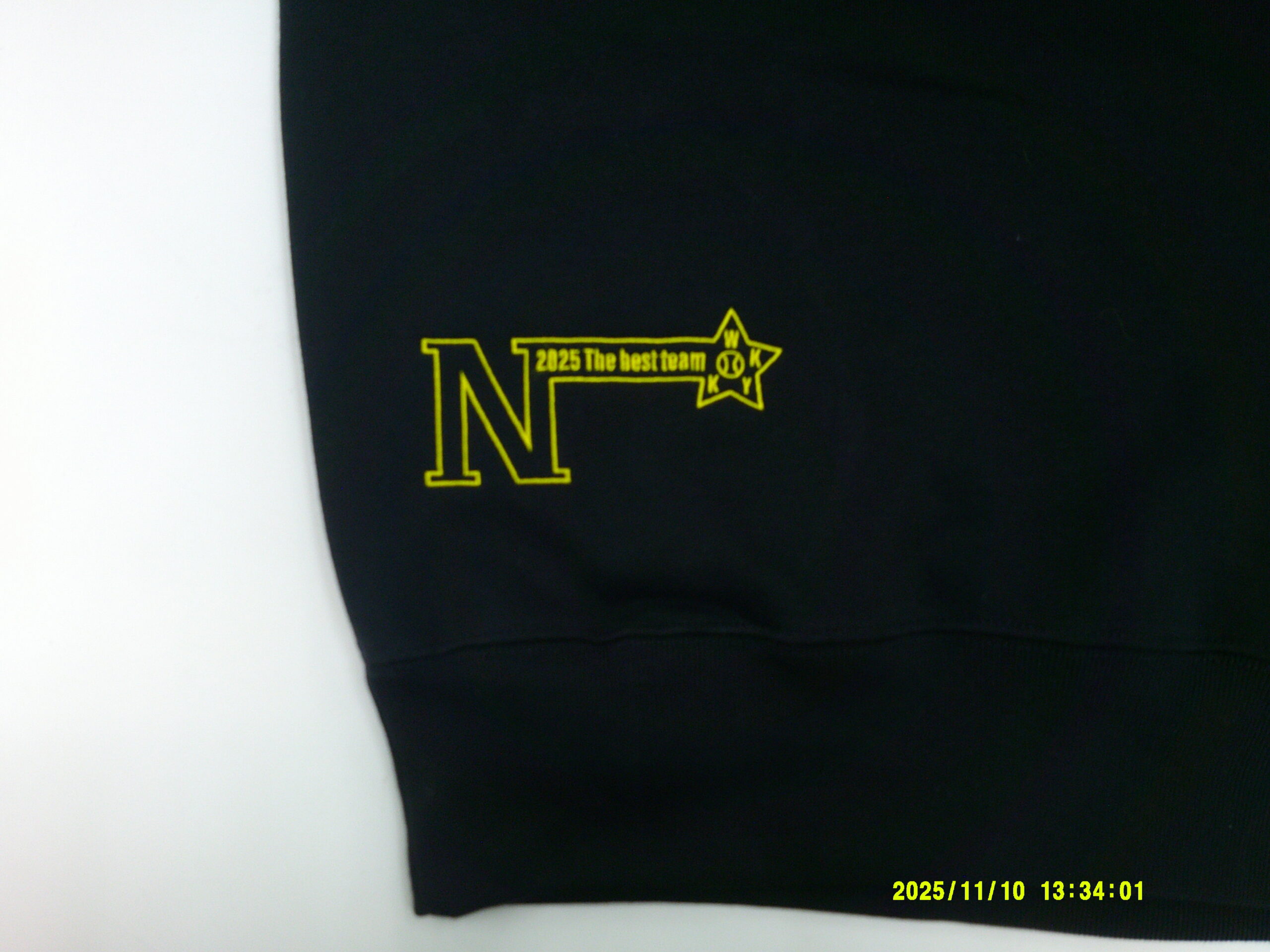 「N 2025 The best team」オリジナルパーカー制作事例 Digital Camera 商品カテゴリ: 7 商品: 2635 利用シーン: 加工位置: 刺繍(背中裾、左胸、左袖) 加工サイズ: 背中裾:120mm×60mm、左胸:100mm×88mm、左袖:70mm×20mm 加工方法: カメオカからのコメント: