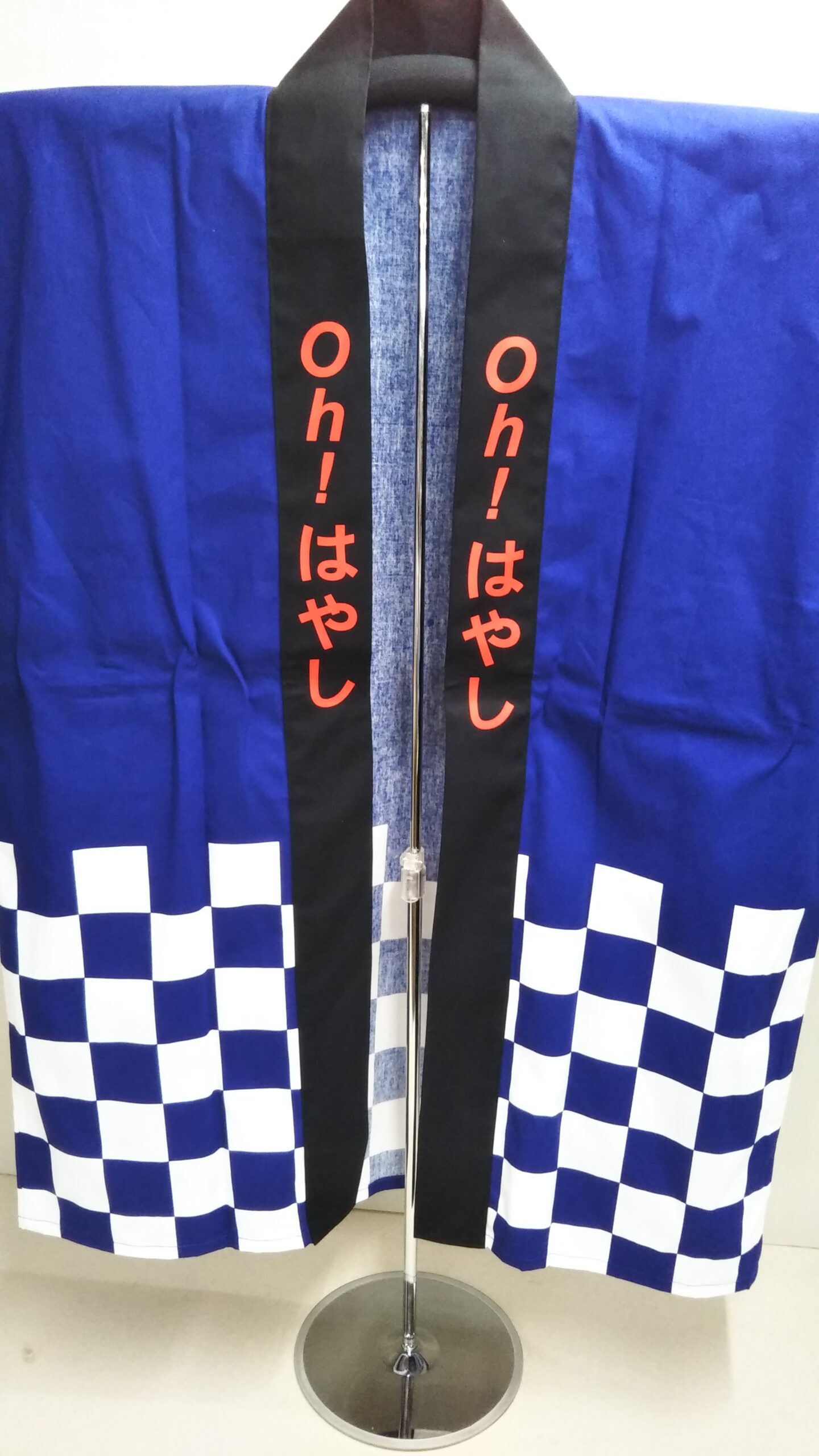 「Oh!はやし」オリジナルはっぴ製作事例 DSC_0075 商品カテゴリ: 1 商品: 269 利用シーン: 加工位置: 両衿・背中 加工サイズ: 背中:横280㎜×縦70㎜ 加工方法: プリント カメオカからのコメント: