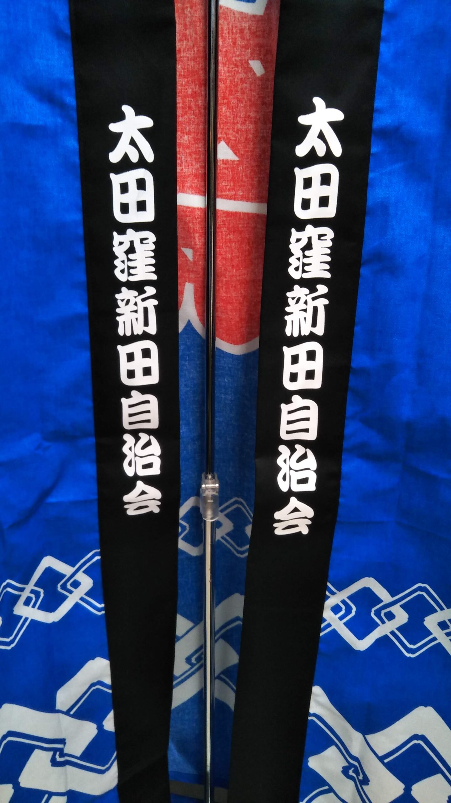 「太田窪新田自治会」オリジナルはっぴ制作事例 DSC_3084 商品カテゴリ: 1 商品: 利用シーン: 加工位置: 両衿 加工サイズ: 横:30㎜×縦:300㎜ 加工方法: プリント カメオカからのコメント: