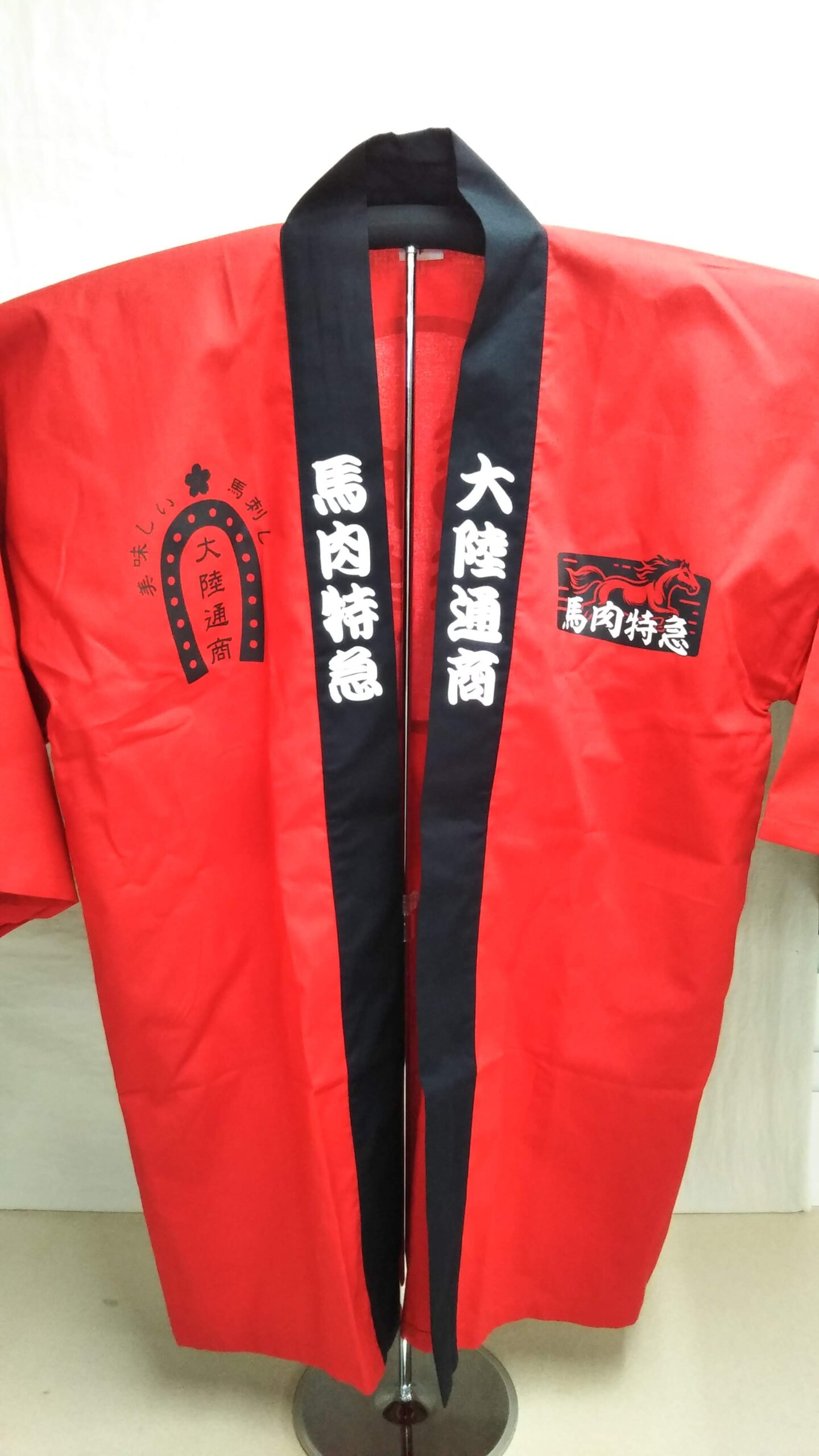 「馬肉特急大陸通商」オリジナルはっぴ制作事例 DSC_3111 DSC_3113 DSC_3114 DSC_3115 DSC_3116 商品カテゴリ: 1 商品: 利用シーン: 加工位置: 両衿・両胸・背中 加工サイズ: 衿:横40㎜×縦170㎜ 左胸:横120㎜×縦68㎜ 右胸:横110㎜×縦150㎜ 背中:横270㎜×縦300㎜ 加工方法: プリント カメオカからのコメント: