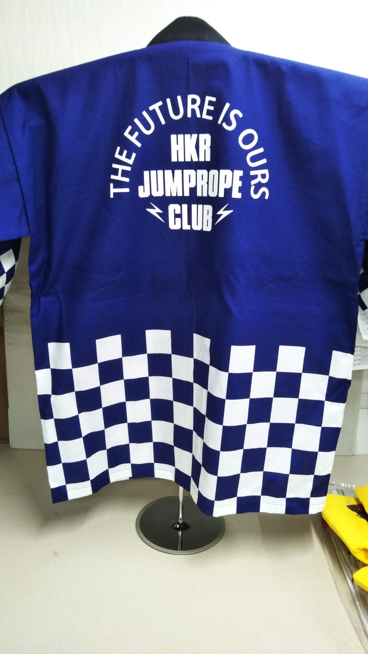 「HKR JUMPROPE CLUB」オリジナルはっぴ制作事例 DSC_3292 商品カテゴリ: 1 商品: 利用シーン: 加工位置: 背中 加工サイズ: 横:300㎜×縦:220㎜ 加工方法: プリント カメオカからのコメント: