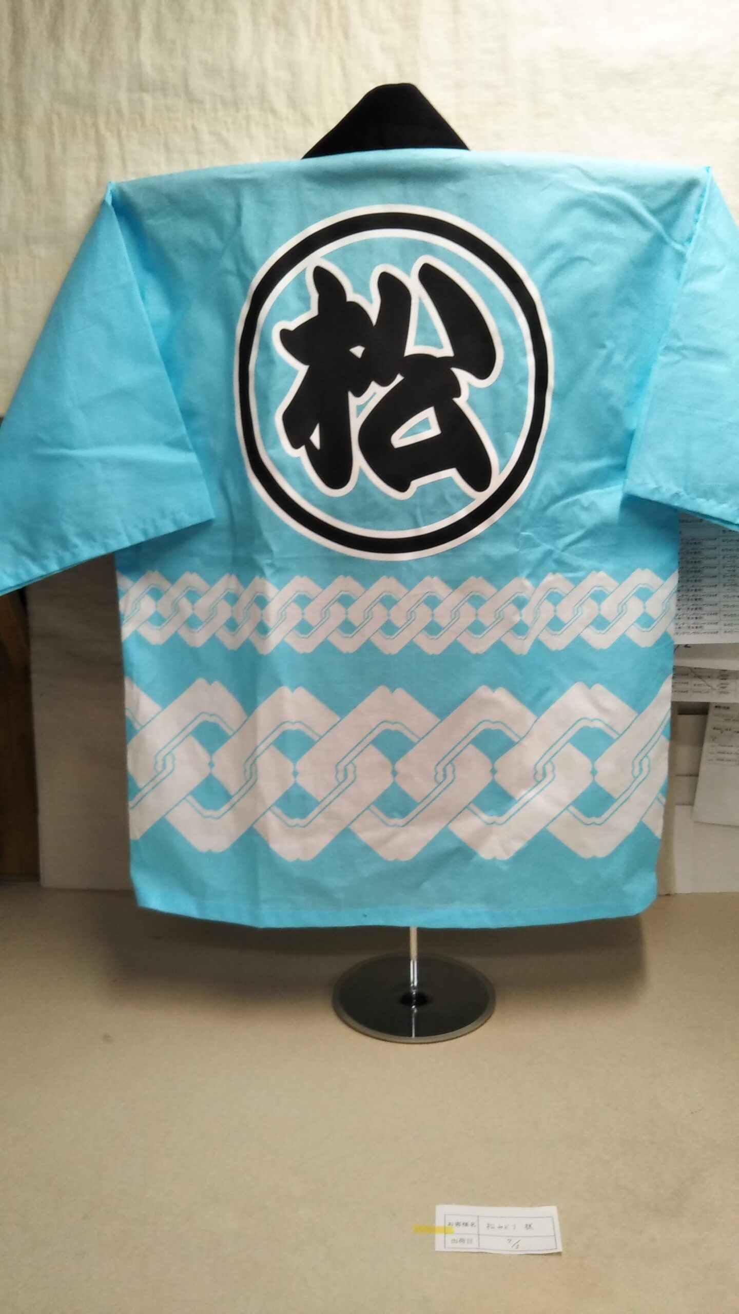 「松」オリジナルはっぴ制作事例 DSC_3313 DSC_3314 商品カテゴリ: 1 商品: 利用シーン: 加工位置: 両衿・背中 加工サイズ: 衿:横40㎜×縦175㎜ 背中:横350㎜×縦350㎜ 加工方法: プリント カメオカからのコメント: