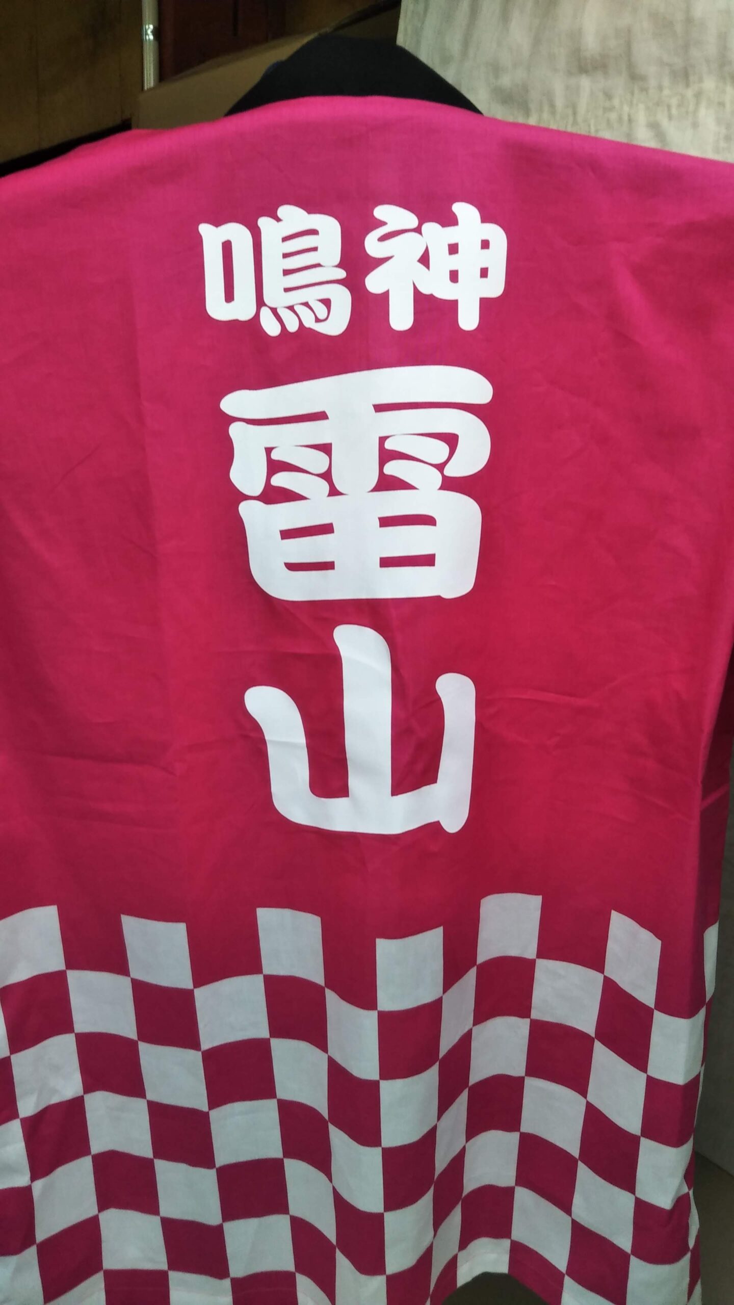 「鳴神雷山」オリジナルはっぴ制作事例 DSC_3391 商品カテゴリ: 1 商品: 利用シーン: 加工位置: 背中 加工サイズ: 横:180㎜×縦:380㎜ 加工方法: プリント カメオカからのコメント: