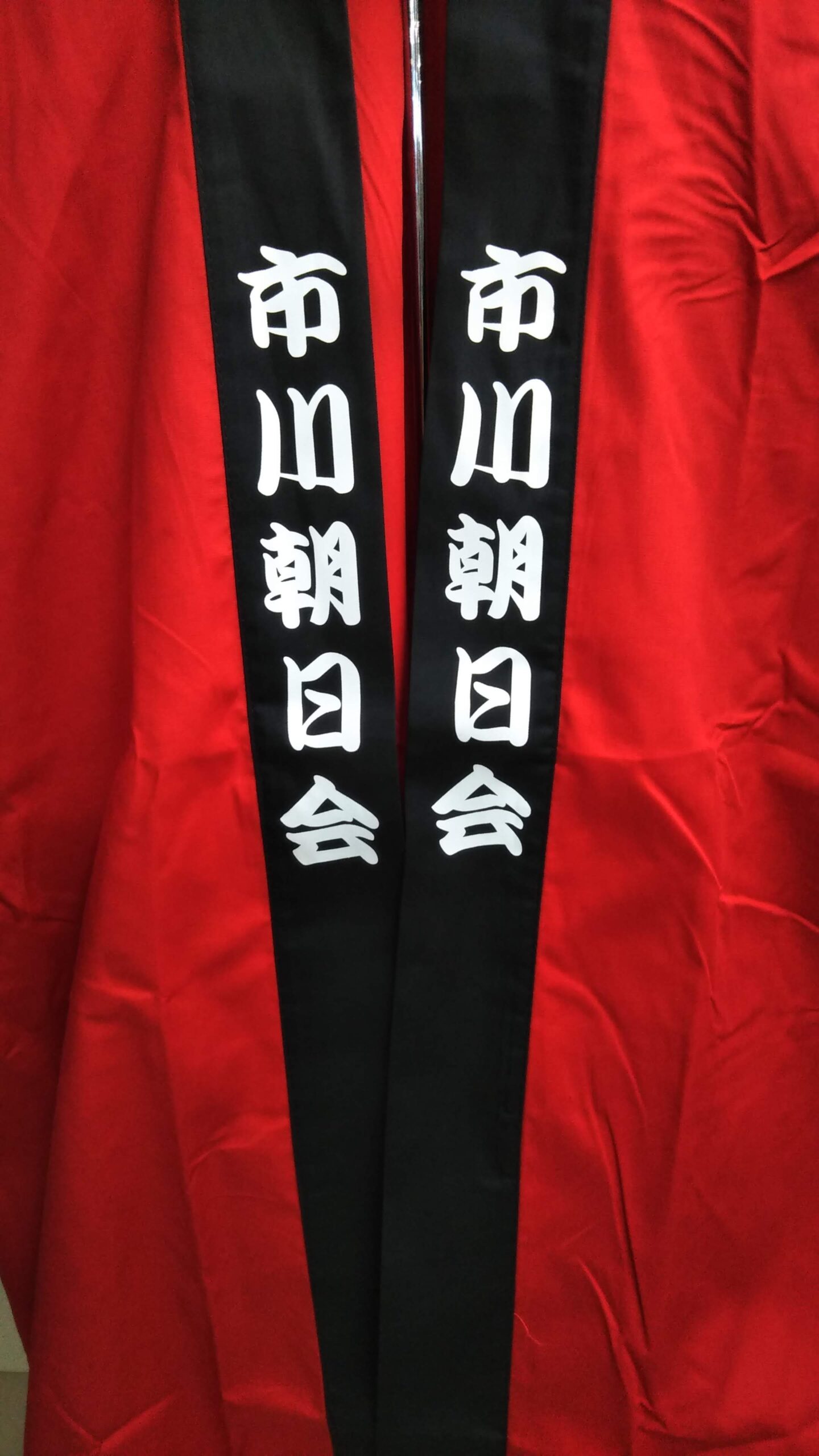 「市川朝日会」オリジナルはっぴ制作事例 DSC_3620 商品カテゴリ: 1 商品: 利用シーン: 加工位置: 両衿 加工サイズ: 横:40㎜×縦:234㎜ 加工方法: プリント カメオカからのコメント:
