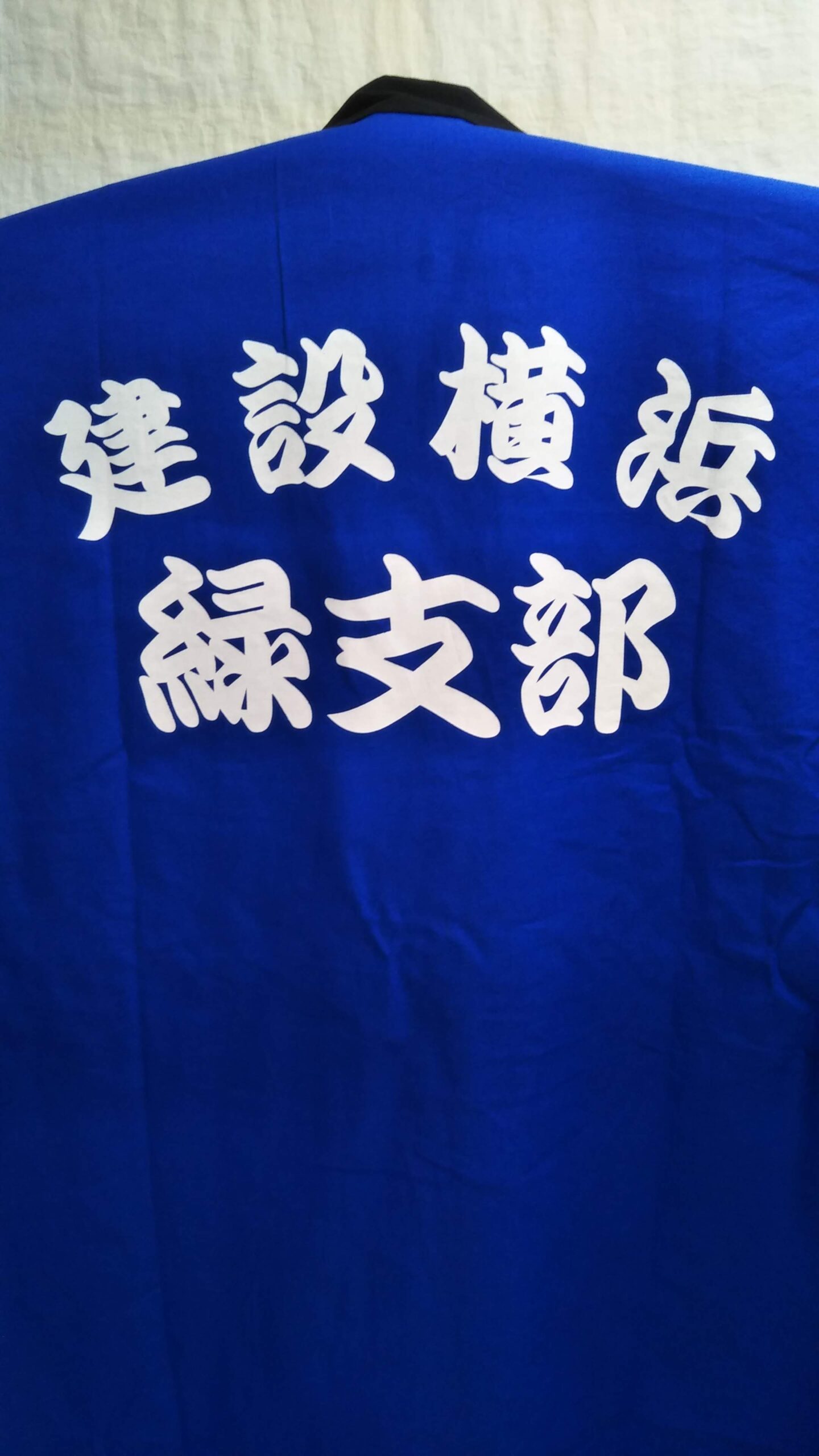 「建設横浜 緑支部」オリジナルはっぴ制作事例 DSC_3640 DSC_3641 DSC_3642 商品カテゴリ: 1 商品: 利用シーン: 加工位置: 両衿・背中 加工サイズ: 衿:横40㎜×縦215㎜ 背中:横330㎜×縦180㎜ 加工方法: プリント カメオカからのコメント: