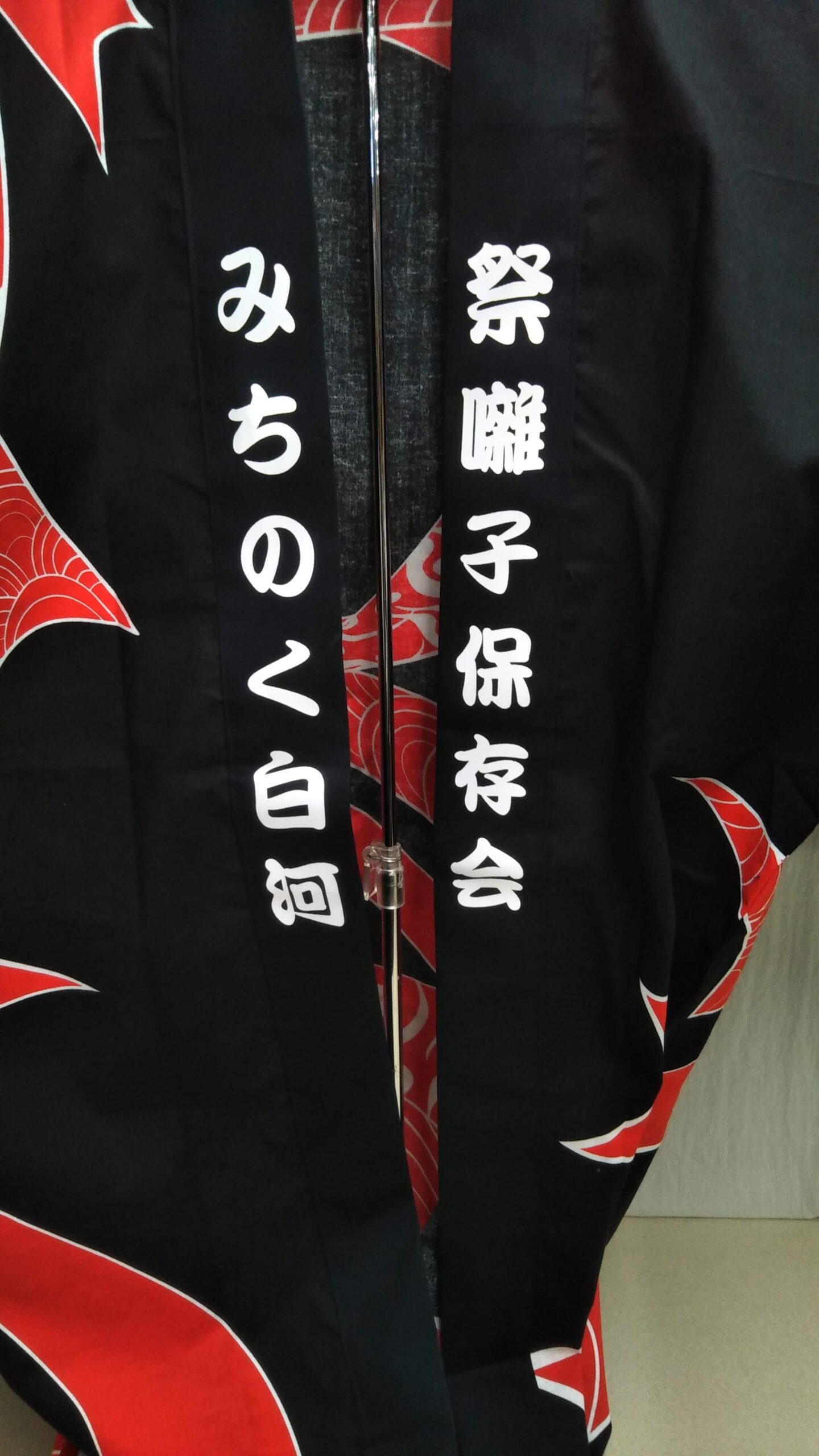 「みちのく白河 祭囃子保存会」オリジナルはっぴ制作事例 DSC_3728 商品カテゴリ: 1 商品: 利用シーン: 加工位置: 両衿 加工サイズ: 横:40㎜ 加工方法: プリント カメオカからのコメント: