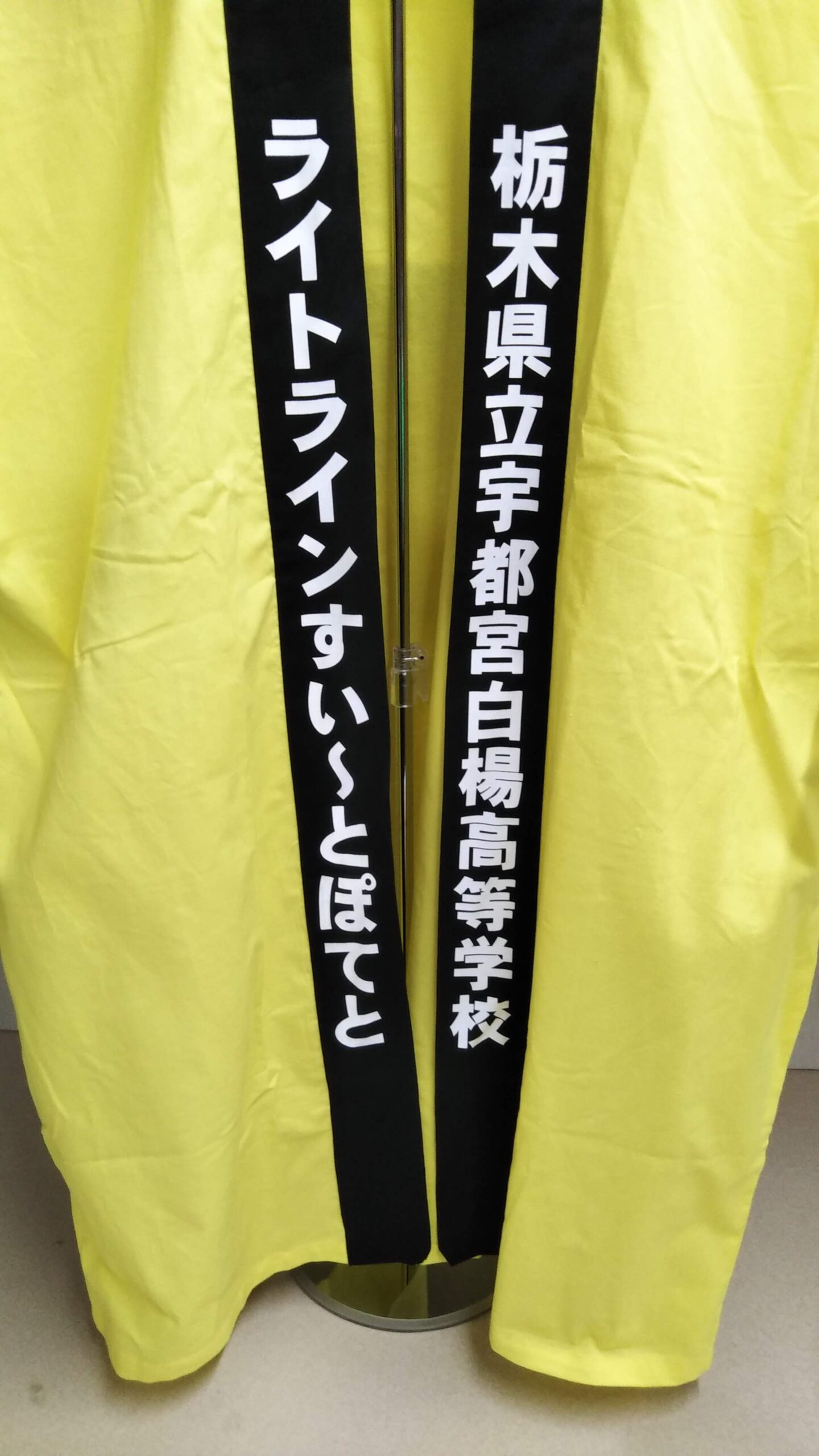 「栃木県立宇都宮白楊高等学校」オリジナルはっぴ制作事例 DSC_3909 商品カテゴリ: 1 商品: 利用シーン: 加工位置: 両衿 加工サイズ: 横:40㎜×縦:523㎜ 加工方法: プリント カメオカからのコメント: