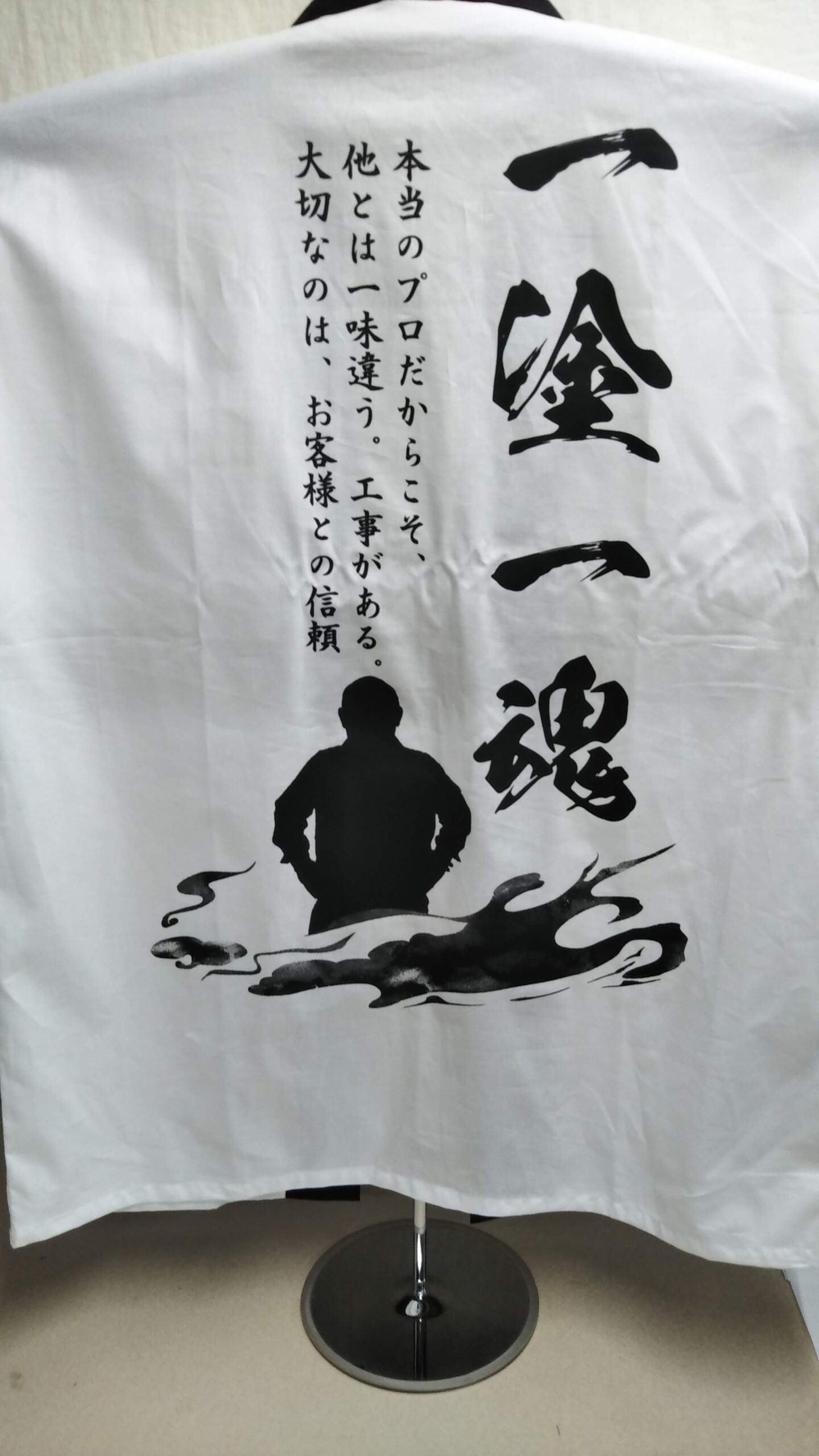 「株式会社 寿住設リフォーム」オリジナルはっぴ制作事例 DSC_4084 商品カテゴリ: 1 商品: 3214 利用シーン: 加工位置: 両衿・背中 加工サイズ: 衿:横40㎜×縦459㎜ 背中:横400㎜×縦600㎜ 加工方法: プリント カメオカからのコメント: