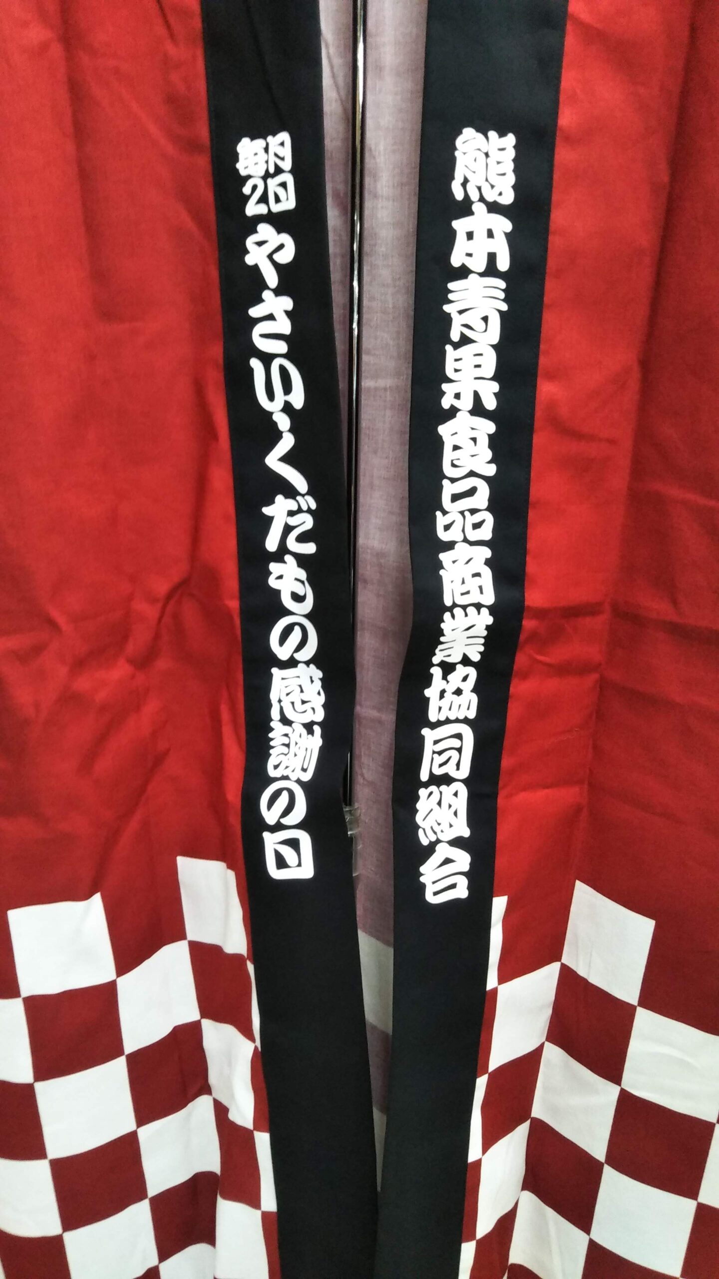 「熊本青果食品商業協同組合」オリジナルはっぴ制作事例 DSC_4081 商品カテゴリ: 1 商品: 利用シーン: 加工位置: 両衿 加工サイズ: 横:30㎜×縦350㎜ 加工方法: プリント カメオカからのコメント: