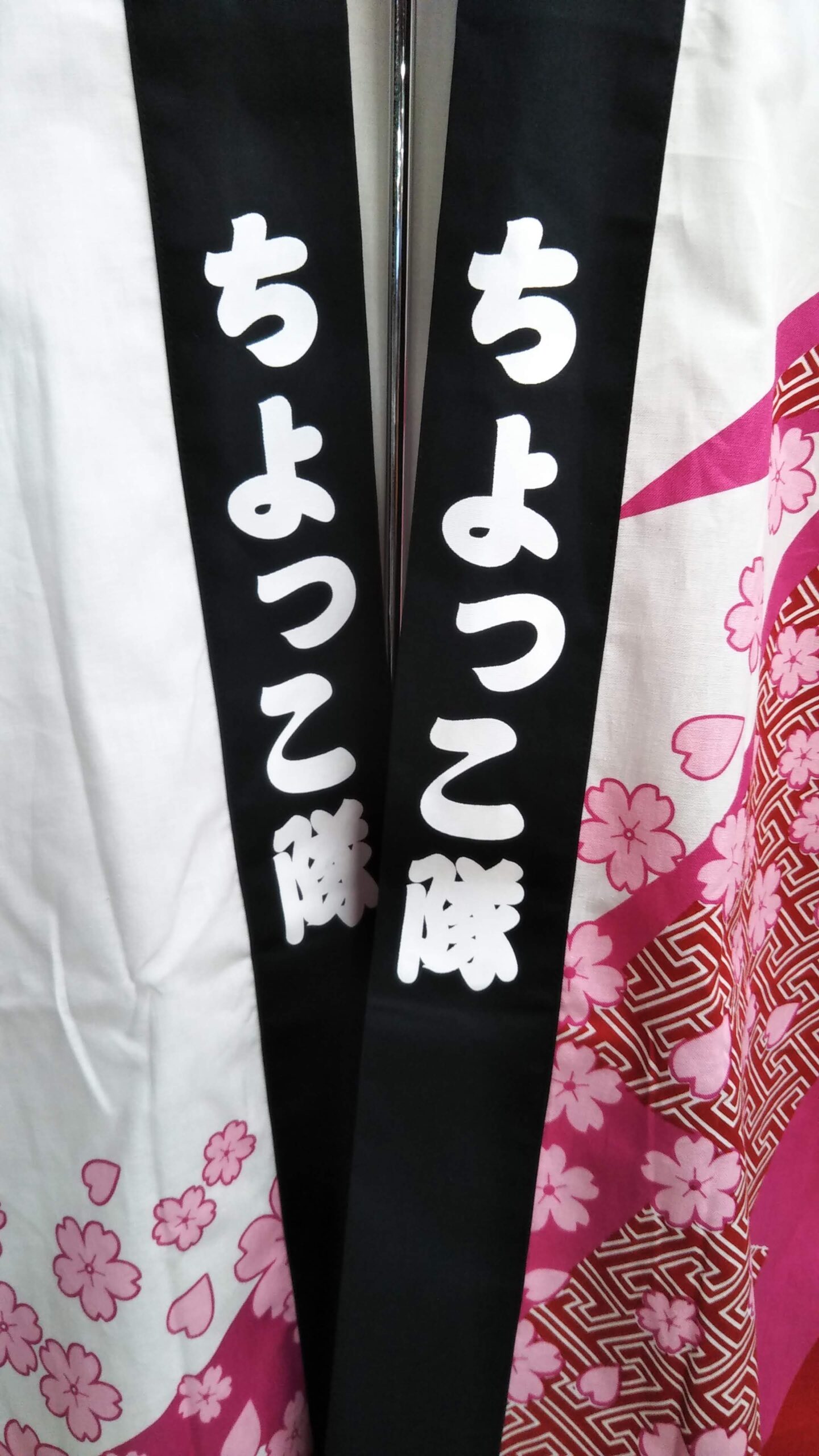「ちよっこ隊」オリジナルはっぴ制作事例 DSC_4232 商品カテゴリ: 1 商品: 利用シーン: 加工位置: 両衿 加工サイズ: 横:40㎜×縦:226㎜ 加工方法: プリント カメオカからのコメント: