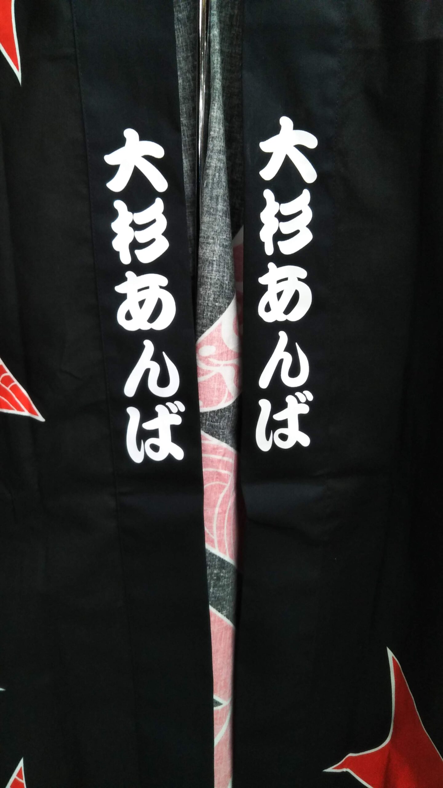 「大杉あんば」オリジナルはっぴ制作事例 DSC_4531 商品カテゴリ: 1 商品: 利用シーン: 加工位置: 両衿 加工サイズ: 横:40㎜×縦:211㎜ 加工方法: プリント カメオカからのコメント: