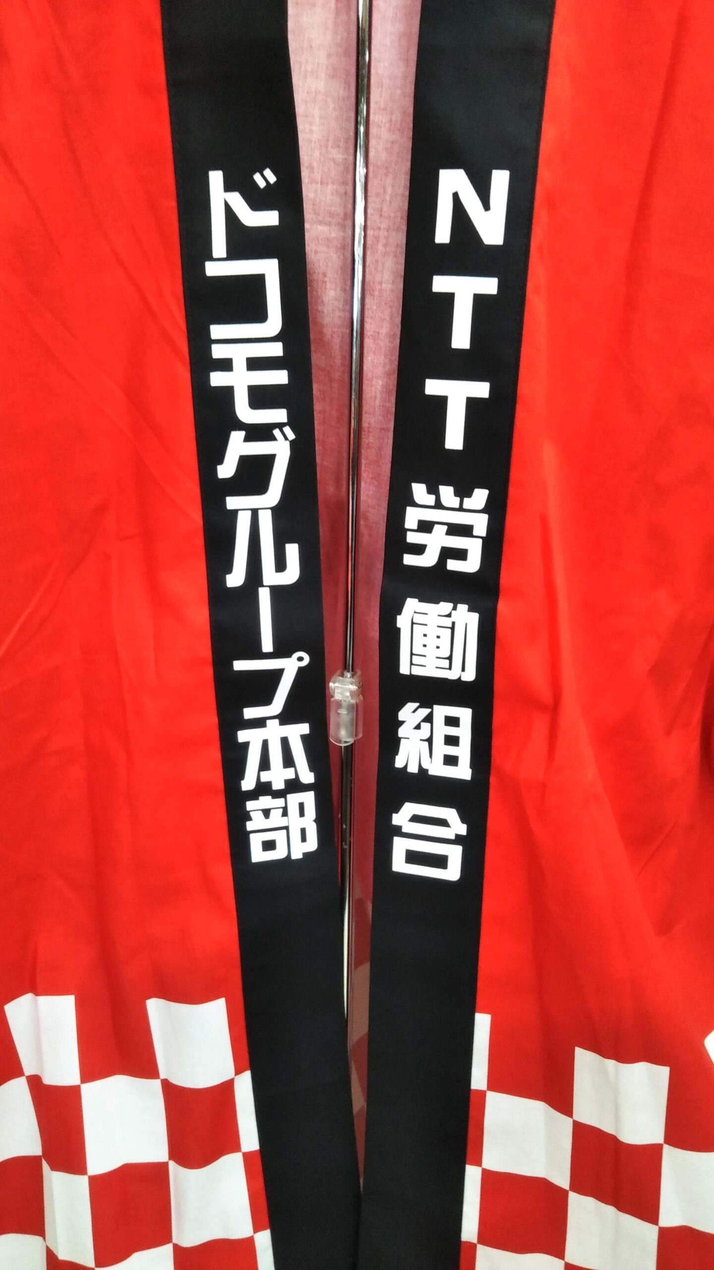 「NTT労働組合 ドコモグループ本部」オリジナルはっぴ制作事例 DSC_4591 商品カテゴリ: 1 商品: 利用シーン: 加工位置: 両衿 加工サイズ: 横:40㎜×縦:349㎜ 加工方法: プリント カメオカからのコメント: