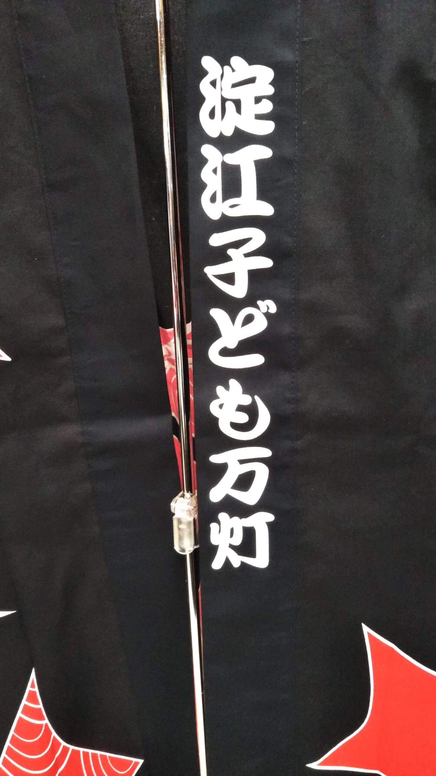 「淀江子ども万灯」オリジナルはっぴ制作事例 DSC_5010 商品カテゴリ: 1 商品: 利用シーン: 加工位置: 左衿 加工サイズ: 横:40㎜×縦:289㎜ 加工方法: プリント カメオカからのコメント: