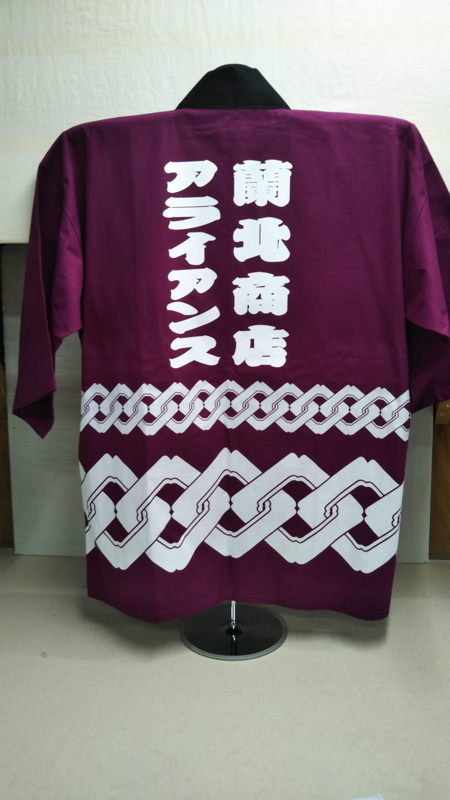 「アライアンス蘭北商店」オリジナルはっぴ制作事例 DSC_0727 DSC_0728 DSC_0729 商品カテゴリ: 1 商品: 利用シーン: 加工位置: 両衿 加工サイズ: 両衿横:40㎜×縦:250㎜ 背中横:200㎜×縦:315㎜ 加工方法: プリント カメオカからのコメント: