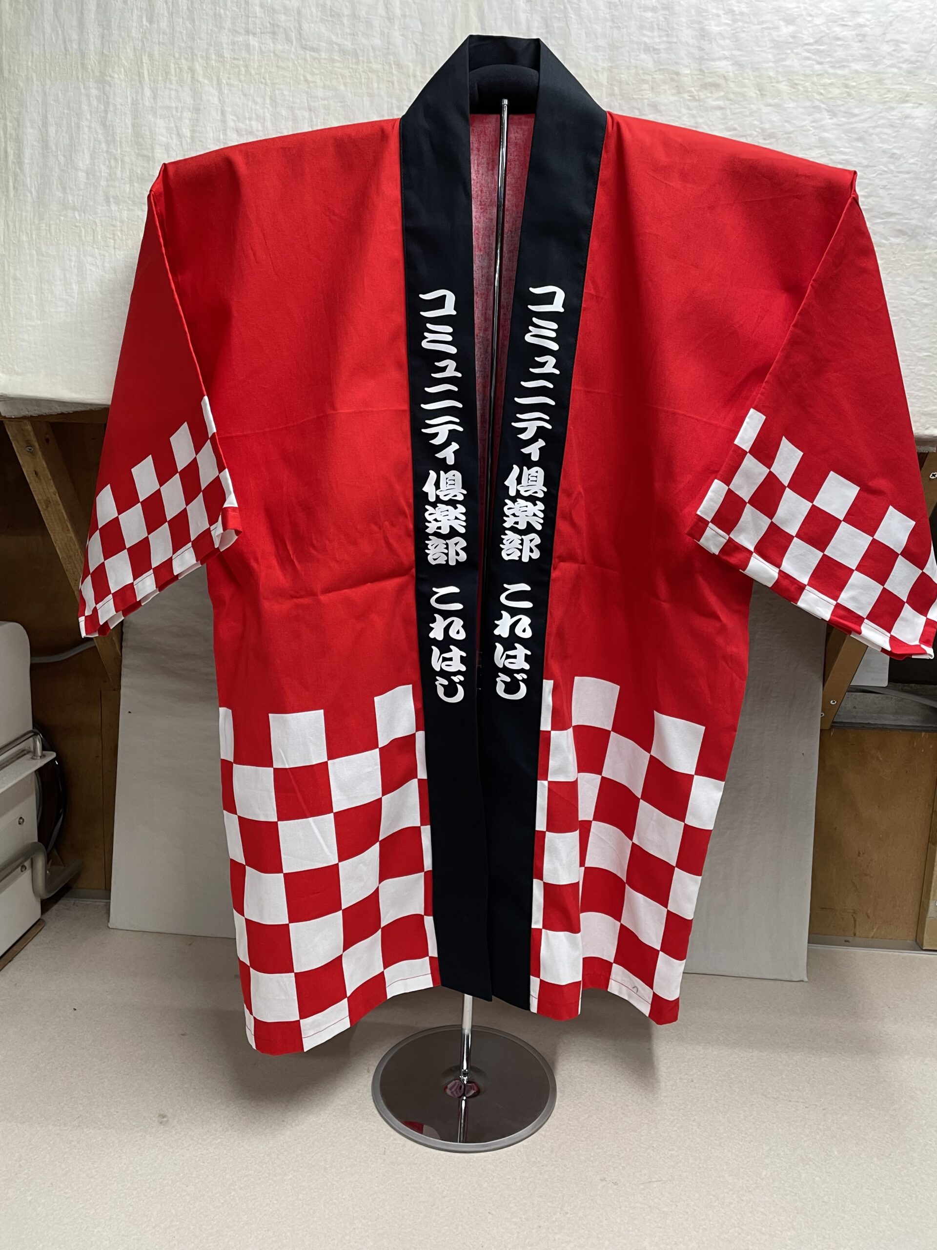 「コミュニティ俱楽部これはじ」オリジナルはっぴ制作事例 商品カテゴリ: 1 商品: 利用シーン: 加工位置: 両衿 加工サイズ: 両衿横:40㎜×縦:370㎜ 背中横:280㎜ 加工方法: プリント カメオカからのコメント: