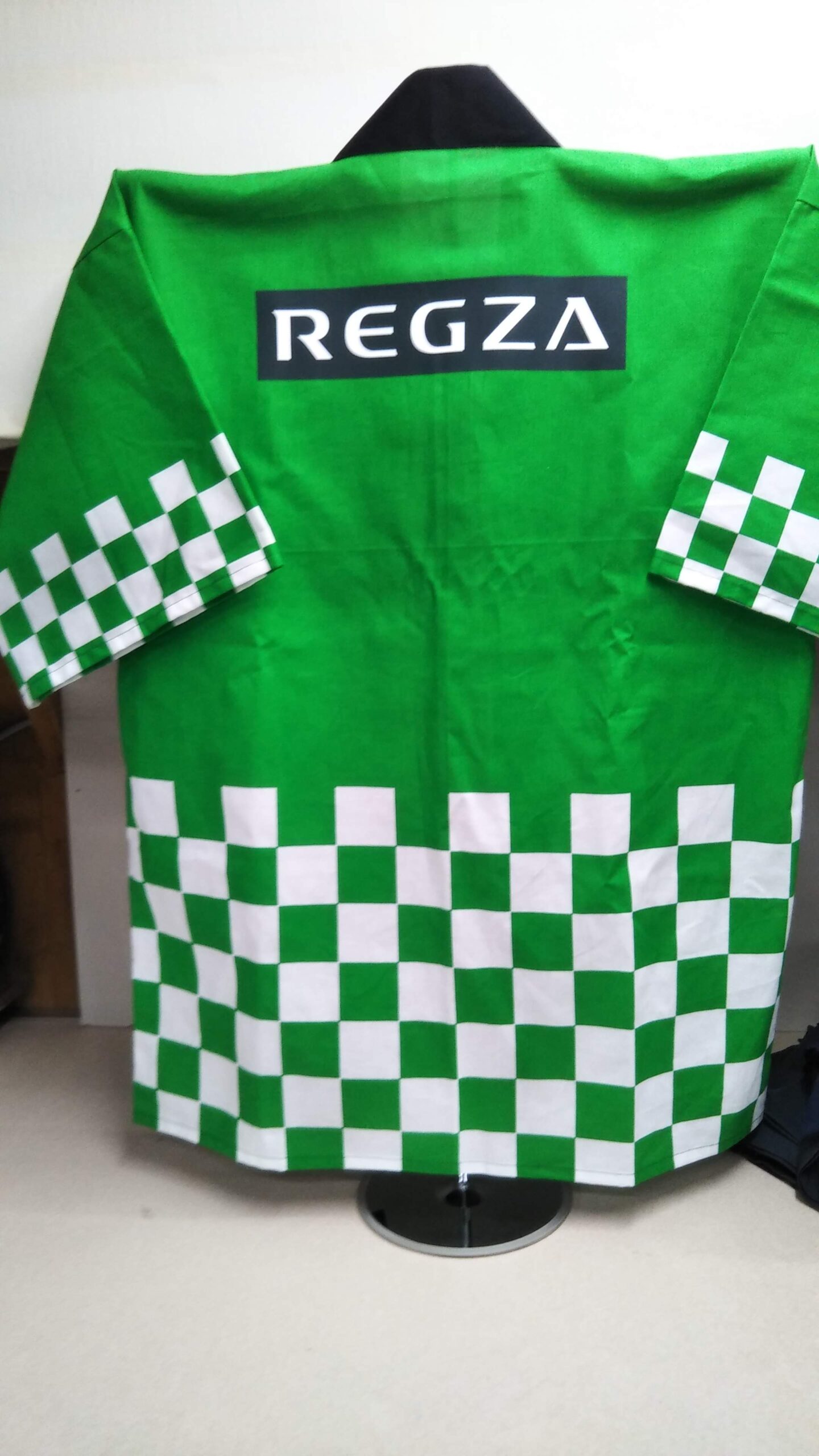 「REGZA」オリジナルはっぴ制作事例 DSC_1330 商品カテゴリ: 1 商品: 利用シーン: 加工位置: 背中 加工サイズ: 横:300mm×縦:71mm 加工方法: プリント カメオカからのコメント: