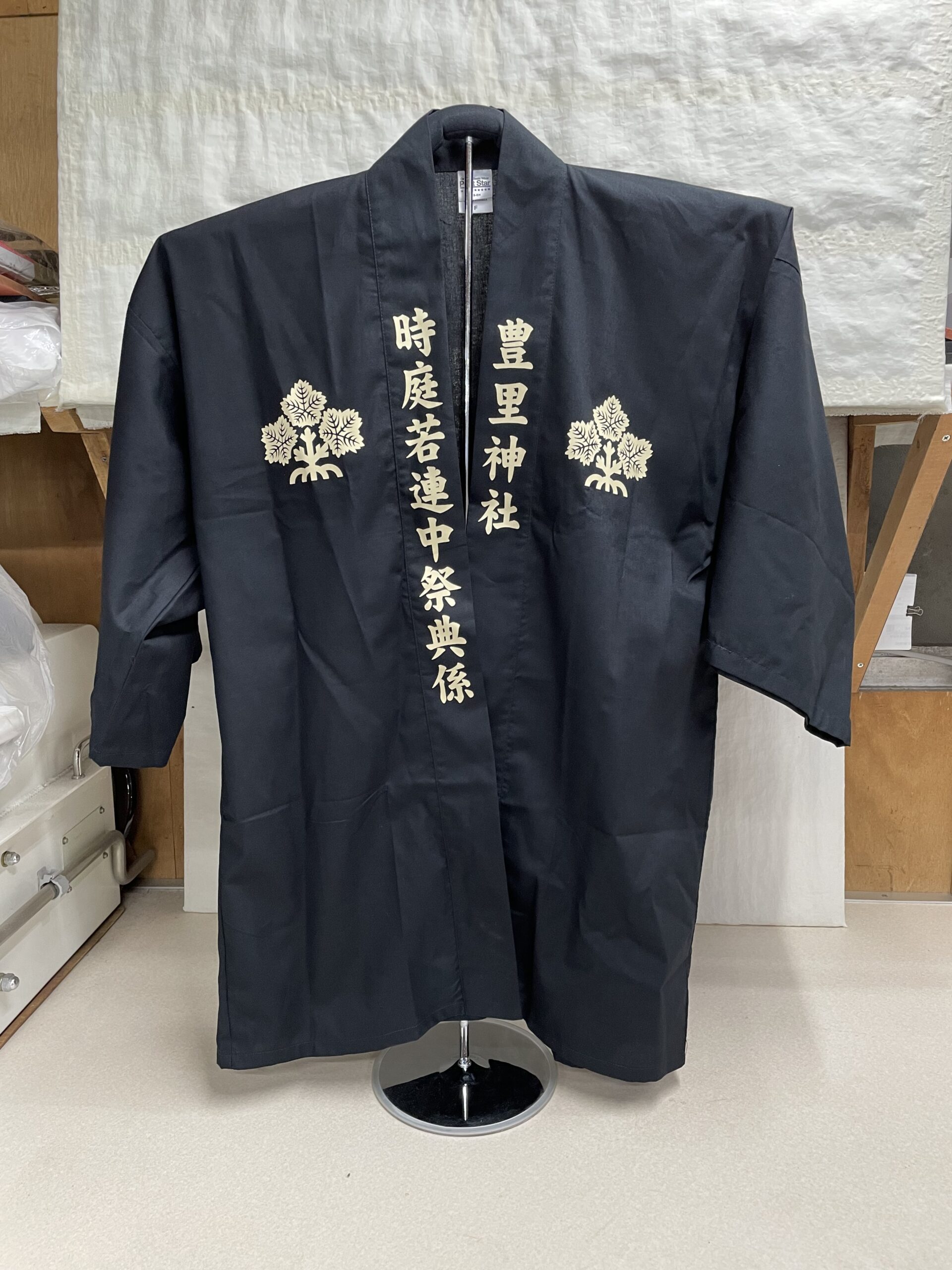 「豊里」オリジナルはっぴ制作事例 商品カテゴリ: 1 商品: 利用シーン: 加工位置: 両衿・背中・両胸 加工サイズ: 両衿横:40㎜ 背中横:400㎜×縦:273㎜ 胸横:100㎜×縦:273㎜ 加工方法: プリント カメオカからのコメント:
