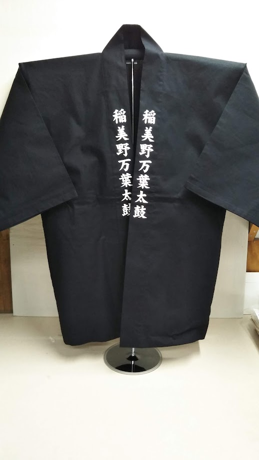 「稲美野万葉太鼓」オリジナルはっぴ制作事例 商品カテゴリ: 1 商品: 278 利用シーン: 加工位置: 両衿 加工サイズ: 横:40mm × 縦:298mm 加工方法: プリント カメオカからのコメント: