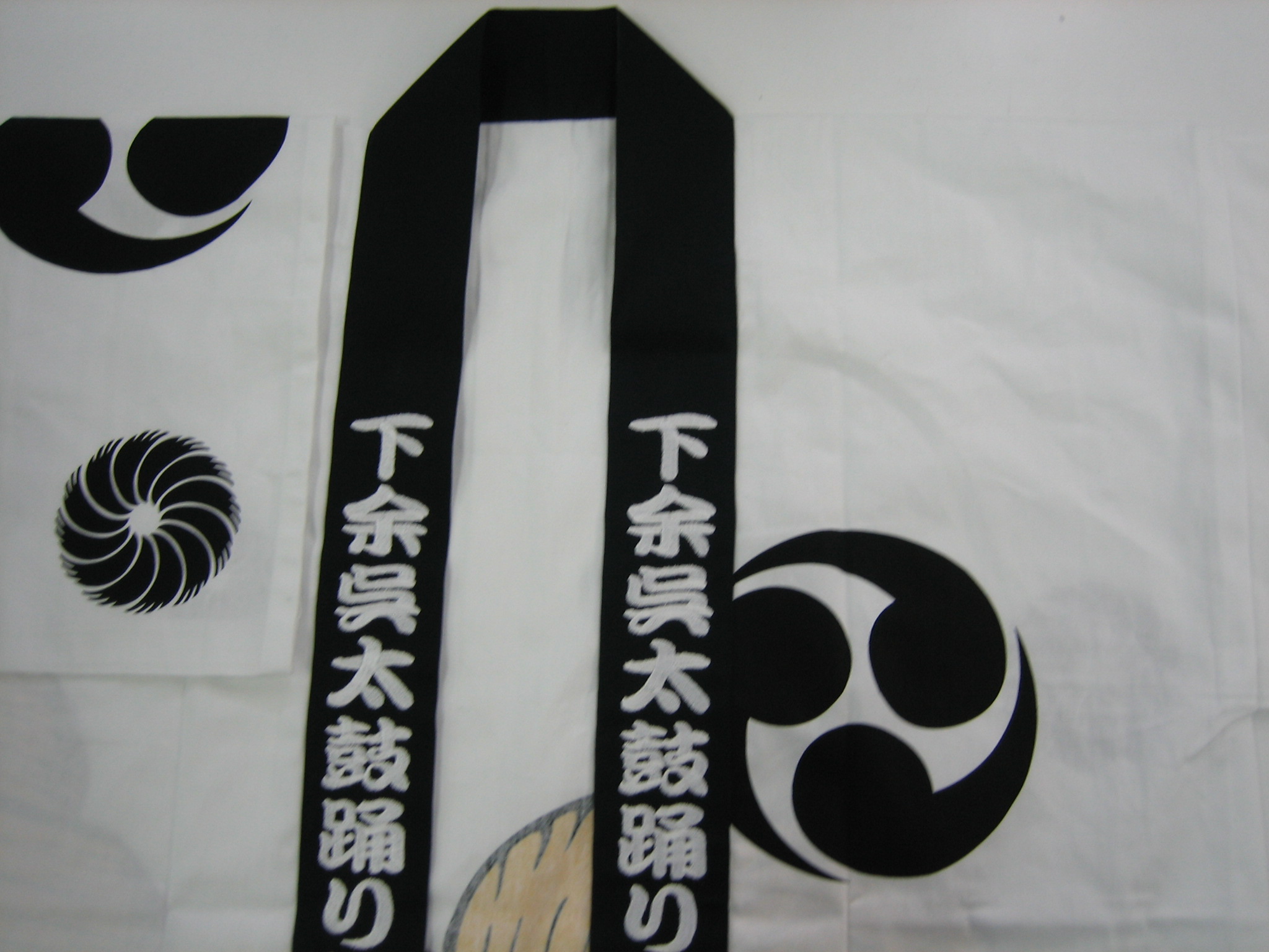 「下余呉太鼓踊り」オリジナルはっぴ制作事例 商品カテゴリ: 1 商品: 280 利用シーン: 加工位置: 両衿 加工サイズ: 横:40mm × 縦:350mm 加工方法: 刺繡 カメオカからのコメント: