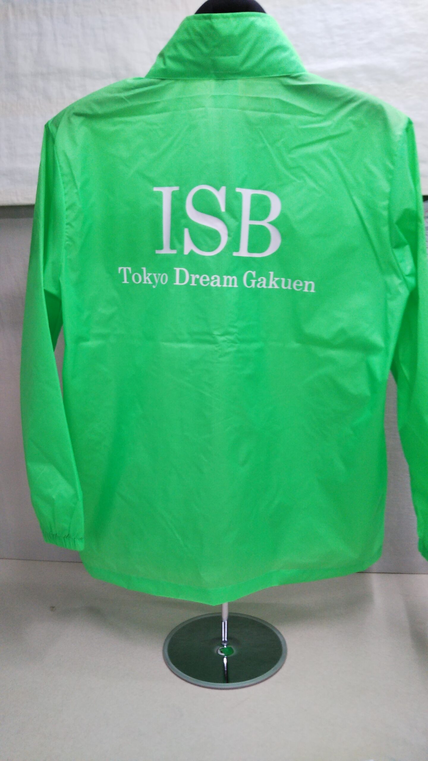 「ISB TokyoDreamGakuen」オリジナルブルゾン制作事例 DSC_0072 商品カテゴリ: 3 商品: 2160 利用シーン: 加工位置: 背中 加工サイズ: 横:300㎜ 加工方法: オリジナルシルクプリント カメオカからのコメント: 00088-NFWベーシックウィンドブレーカーの背中にオリジナルプリントを入れました。ナイロン製ウエアーのシルクプリントは難易度が高いのですがきれいに仕上げる事が出来ました。プリントサイズも大きめでとってもインパクトがあります。
