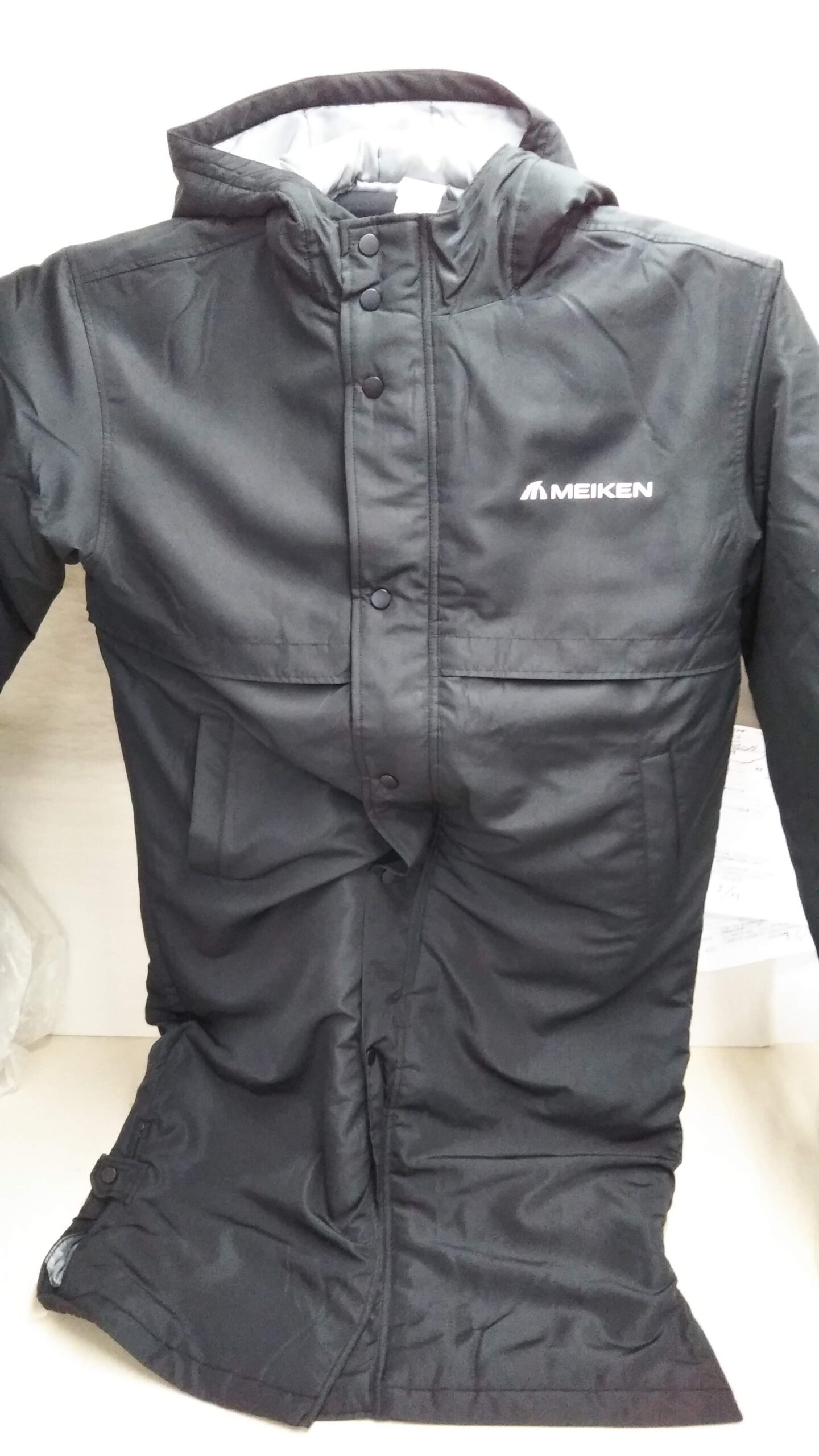 「MEIKEN」オリジナルコート制作事例 DSC_2755 商品カテゴリ: 3 商品: 418 利用シーン: 加工位置: 左胸 加工サイズ: 横:100㎜×縦:13㎜ 加工方法: プリント カメオカからのコメント: