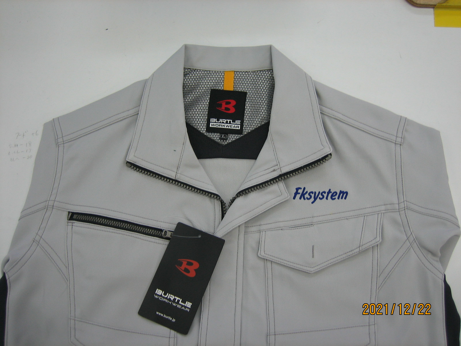 「FKsystem」オリジナル作業着制作事例 商品カテゴリ: 98 商品: 利用シーン: 130 加工位置: 左胸 加工サイズ: 横:65mm×縦:20mm 加工方法: ネーム刺繍 カメオカからのコメント: 人気のバートル社製の作業着に刺繍をしました。フォントはフラッシュライト体を使用してます。