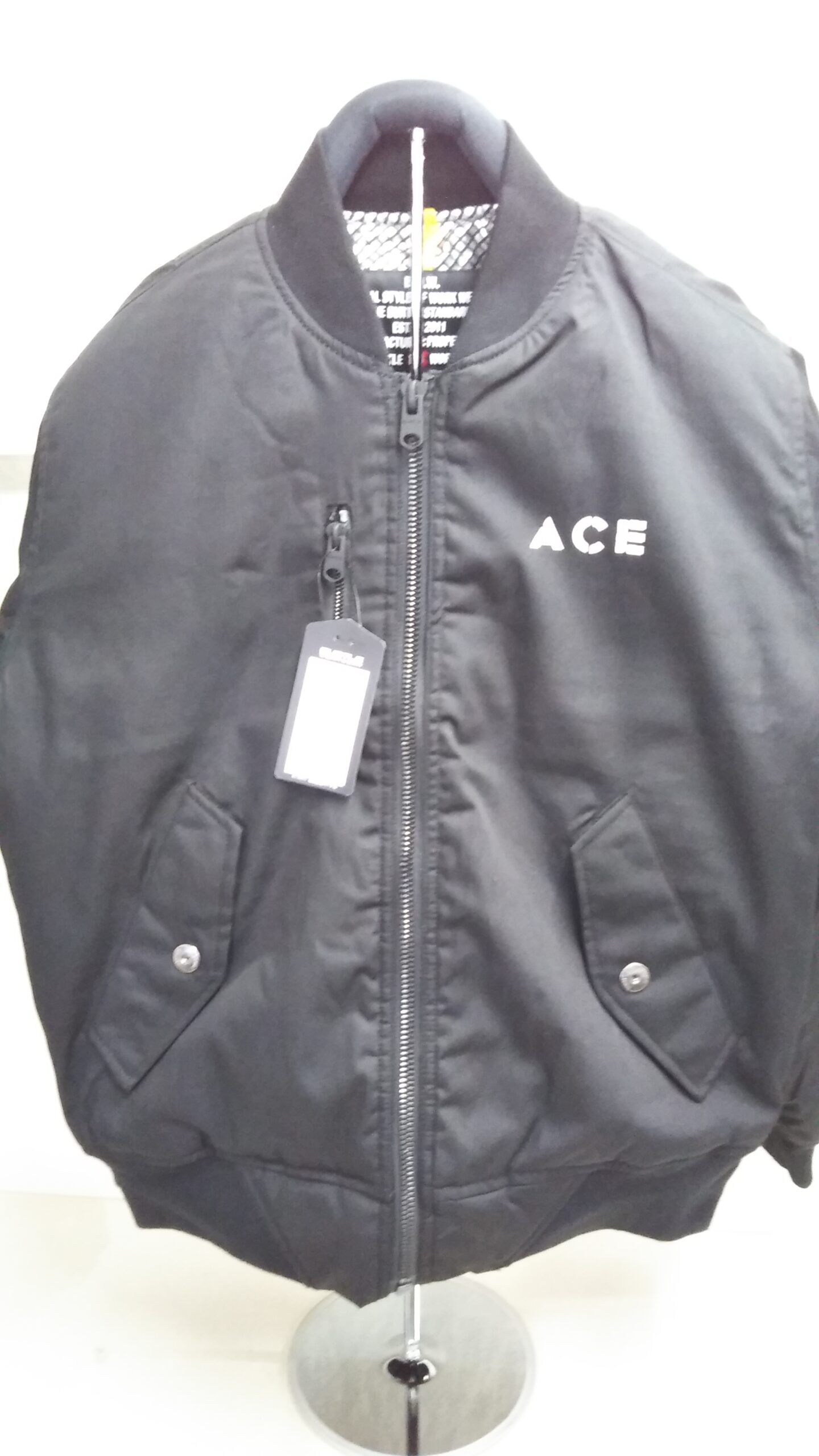 「ACEロゴ」オリジナルジャケット制作事例 DSC_0093 商品カテゴリ: 3 商品: 2383 利用シーン: 加工位置: 左胸 加工サイズ: 横:64㎜ 加工方法: オリジナルシルクプリント カメオカからのコメント: 人気のバートルフライトジャケットの左胸にオリジナルプリントを入れました。シンプルに3文字のプリントデザインです。アーミー風のフォントがジャケット本体とマッチしてカッコいい仕上がりになりました。