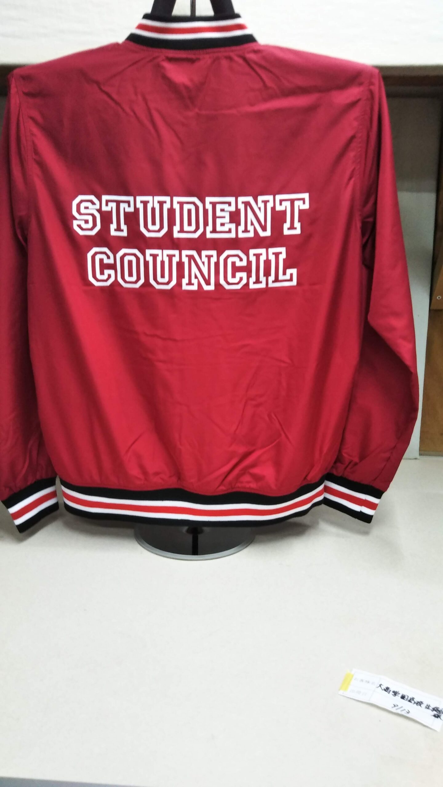 「STUDENT COUNCIL」オリジナルジャケット制作事例 商品カテゴリ: 3 商品: 372 利用シーン: 加工位置: 背中 加工サイズ: 横:320mm×縦:120mm 加工方法: プリント カメオカからのコメント: