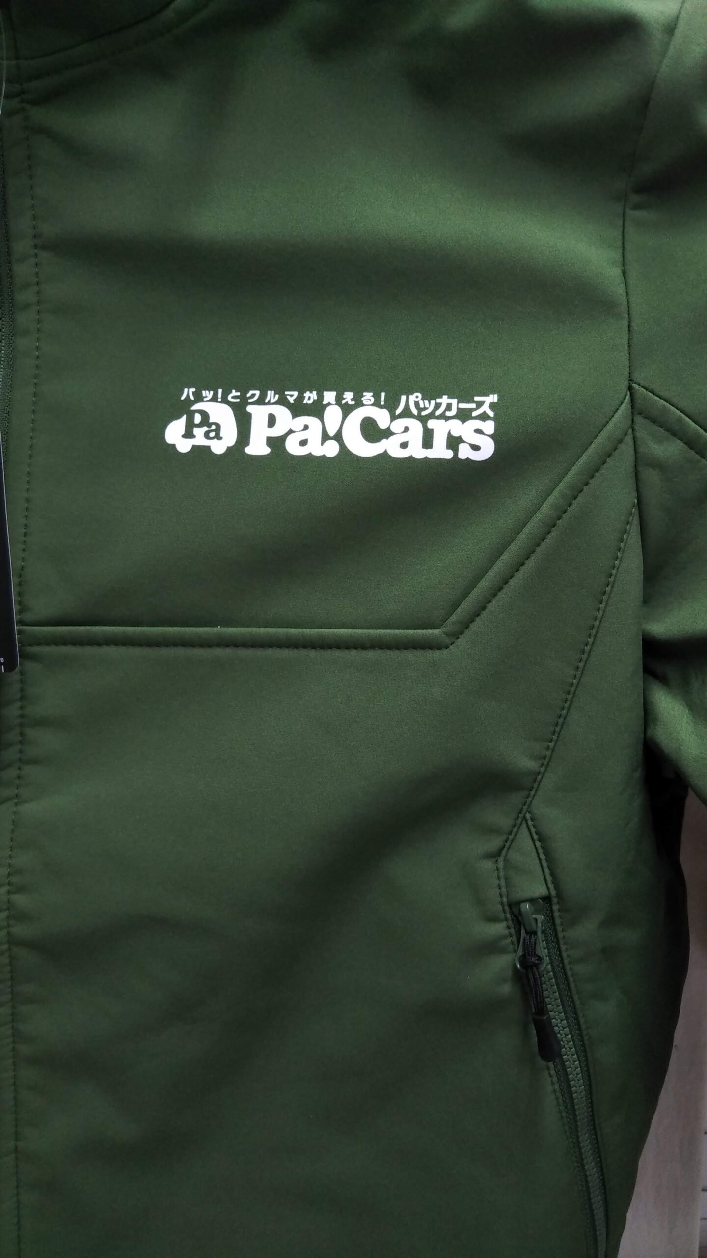 「Pa!Cars」オリジナルジャケット制作事例 DSC_4284 商品カテゴリ: 3 商品: 3636 利用シーン: 加工位置: 左胸 加工サイズ: 横:100㎜×縦:20.8㎜ 加工方法: プリント カメオカからのコメント: