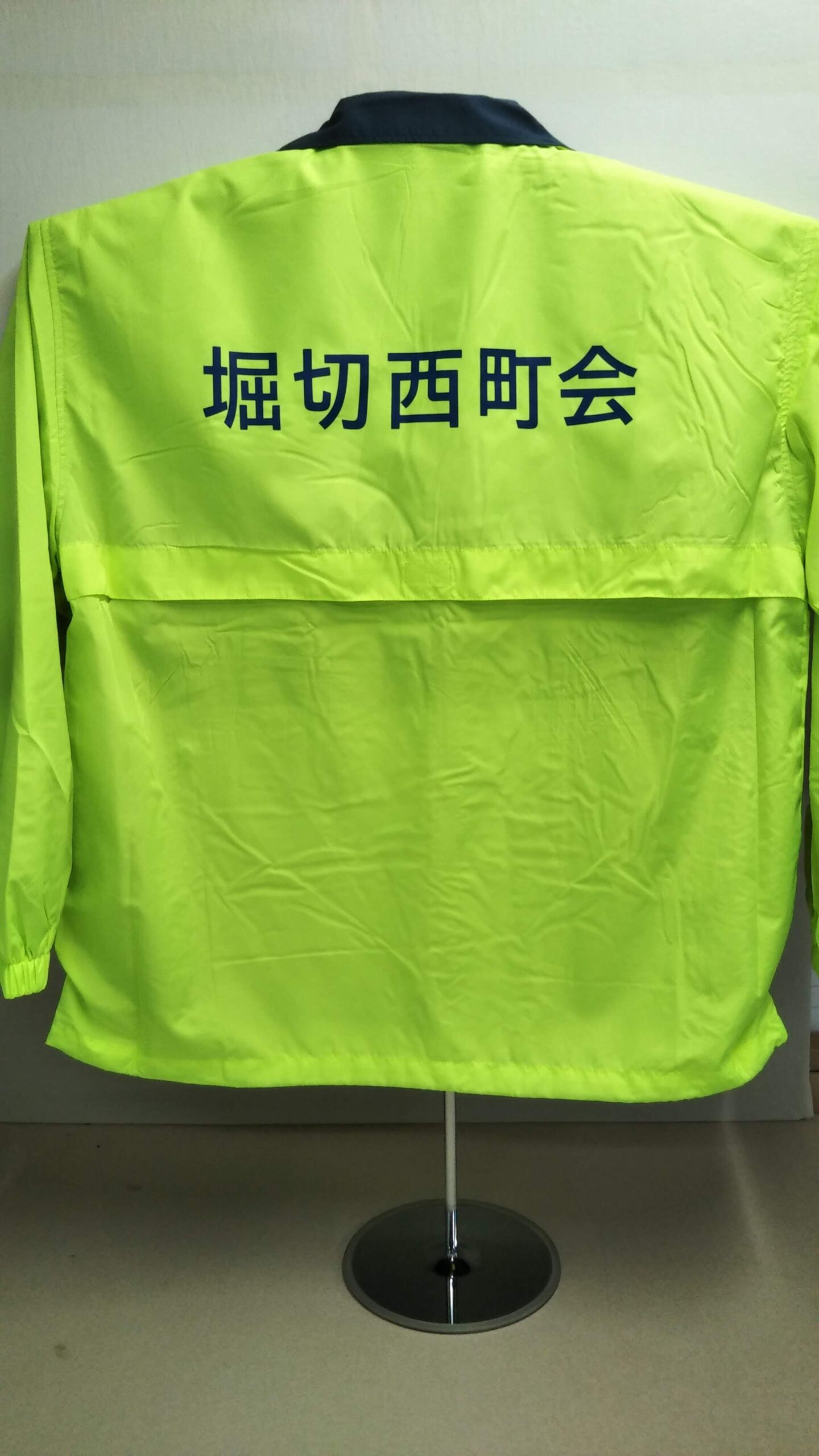 「堀切西町会」オリジナルジャケット制作事例 DSC_4492 DSC_4493 DSC_4495 商品カテゴリ: 3 商品: 389 利用シーン: 加工位置: 左胸・背中 加工サイズ: 胸:110㎜×縦:110㎜ 背中:横330㎜×縦60㎜ 加工方法: プリント カメオカからのコメント: