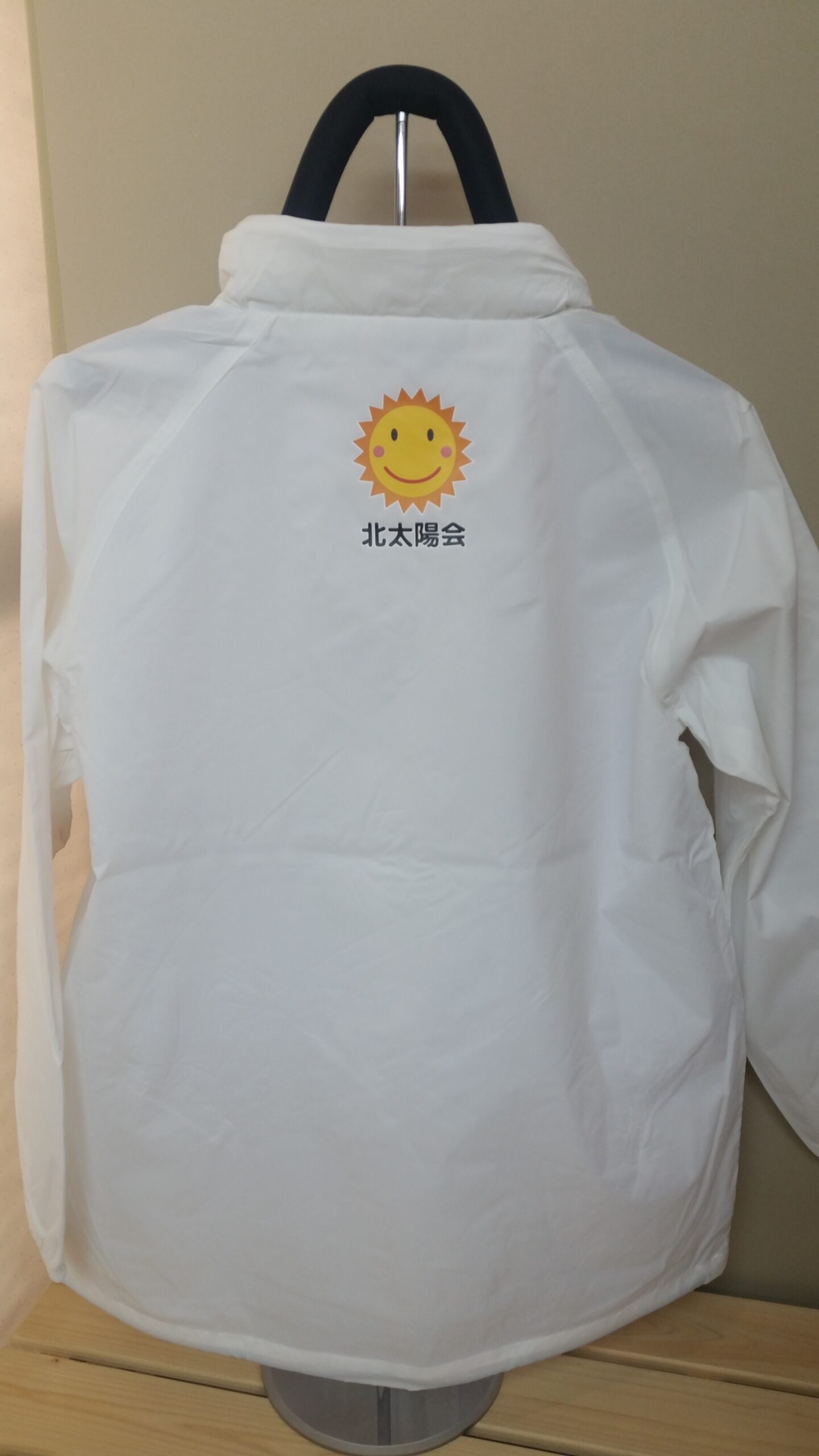「北太陽会」オリジナルジャケット制作事例 商品カテゴリ: 3 商品: 883 利用シーン: 加工位置: 左胸・背中衿下 加工サイズ: 左胸:横40㎜×50㎜ 背中:横76㎜×縦96㎜ 加工方法: 転写プリント カメオカからのコメント: