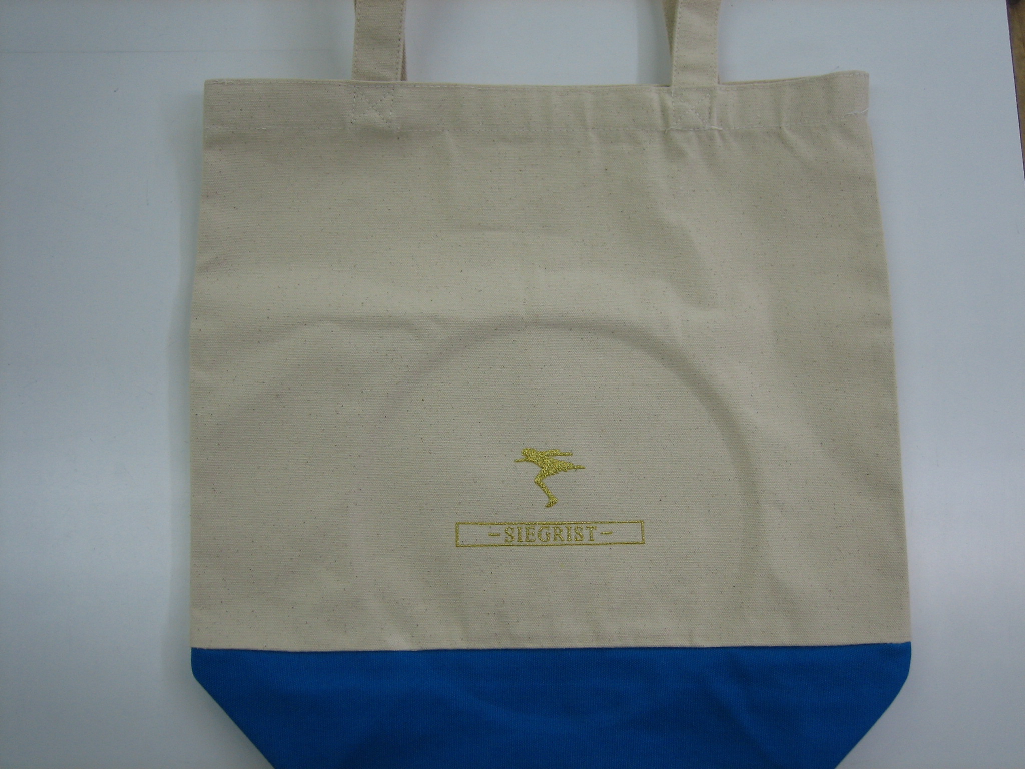 「SIEGRIST」オリジナルトート制作事例 商品カテゴリ: 20 商品: 1155 利用シーン: 加工位置: 中央下 加工サイズ: 横:93mm × 縦:49mm 加工方法: 刺繡 カメオカからのコメント: