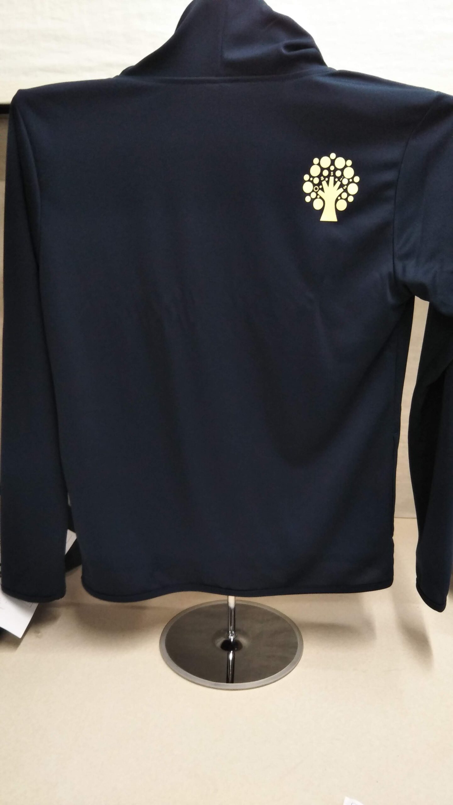「oasis」オリジナルパーカー制作事例 商品カテゴリ: 7 商品: 602 利用シーン: 加工位置: 背中左肩 加工サイズ: 横:61mm×縦:70mm 加工方法: プリント カメオカからのコメント: