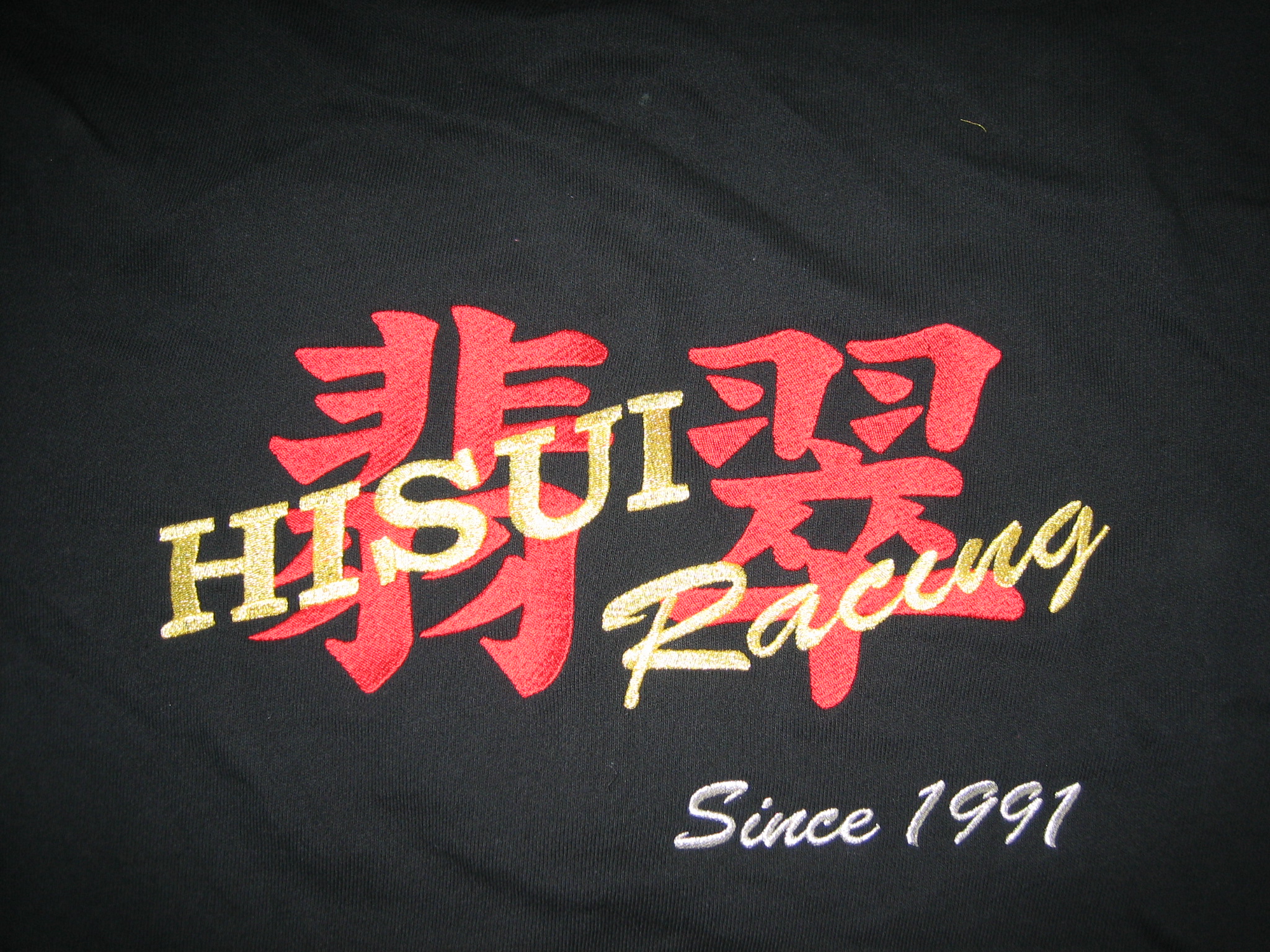 「HISUI Racing STAFF」オリジナルパーカー制作事例 HISU 商品カテゴリ: 7 商品: 596 利用シーン: 加工位置: 左胸・背中 加工サイズ: 左胸/横:90mm×縦:27mm・背中/横:300mm×縦:163mm 加工方法: 刺繍 カメオカからのコメント: