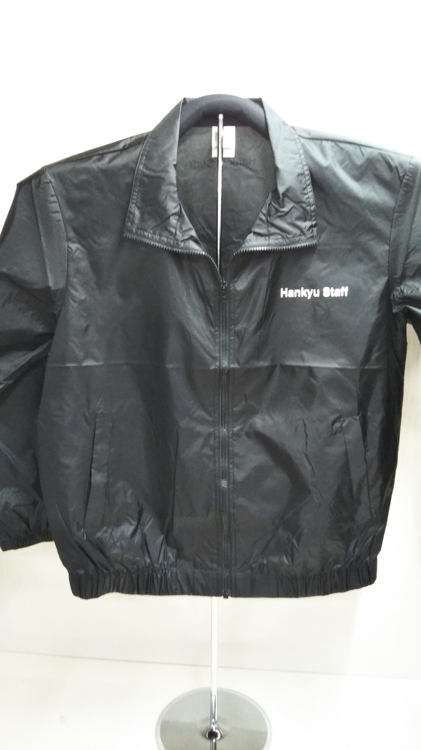 「Hankyu Staff」オリジナルブルゾン制作事例 DSC_0046 00010002 商品カテゴリ: 3 商品: 370 利用シーン: 130 加工位置: 左胸・背中衿下 加工サイズ: 左胸/横:90mm・背中衿下/横:90mm 加工方法: プリント カメオカからのコメント: 00051-ETベーシックカラーブルゾンの左胸と背中衿下にオリジナルプリントを入れました。シンプルに文字のみのプリントです。こちらのアイテムはスタッフ様用に毎年大人気でございます。