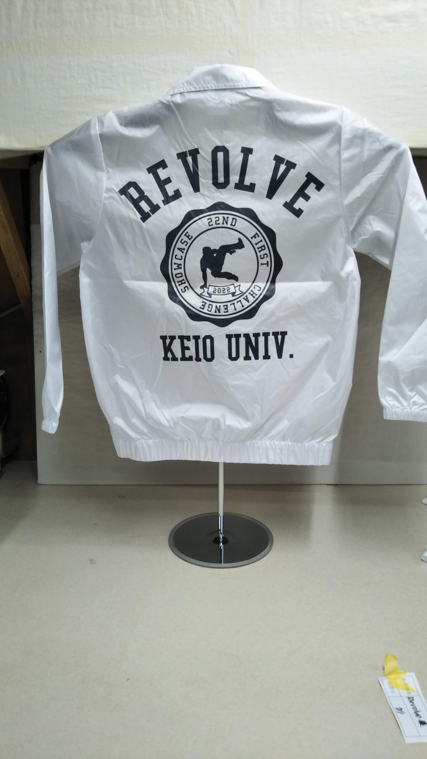 「REVOLVE KEIO UNIV.」オリジナルブルゾン制作事例 商品カテゴリ: 3 商品: 370 利用シーン: 加工位置: 背中 加工サイズ: 横:320mm×縦:332mm 加工方法: プリント カメオカからのコメント: