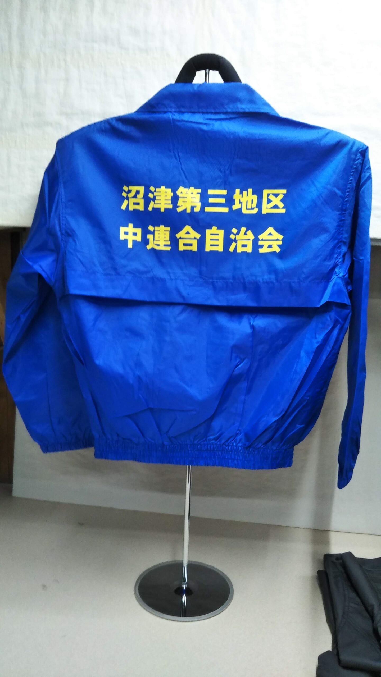 「沼津第三地区 中連合自治会」オリジナルブルゾン制作事例 商品カテゴリ: 3 商品: 382 利用シーン: 加工位置: 背中 加工サイズ: 横:280mm×縦:106mm 加工方法: プリント カメオカからのコメント: