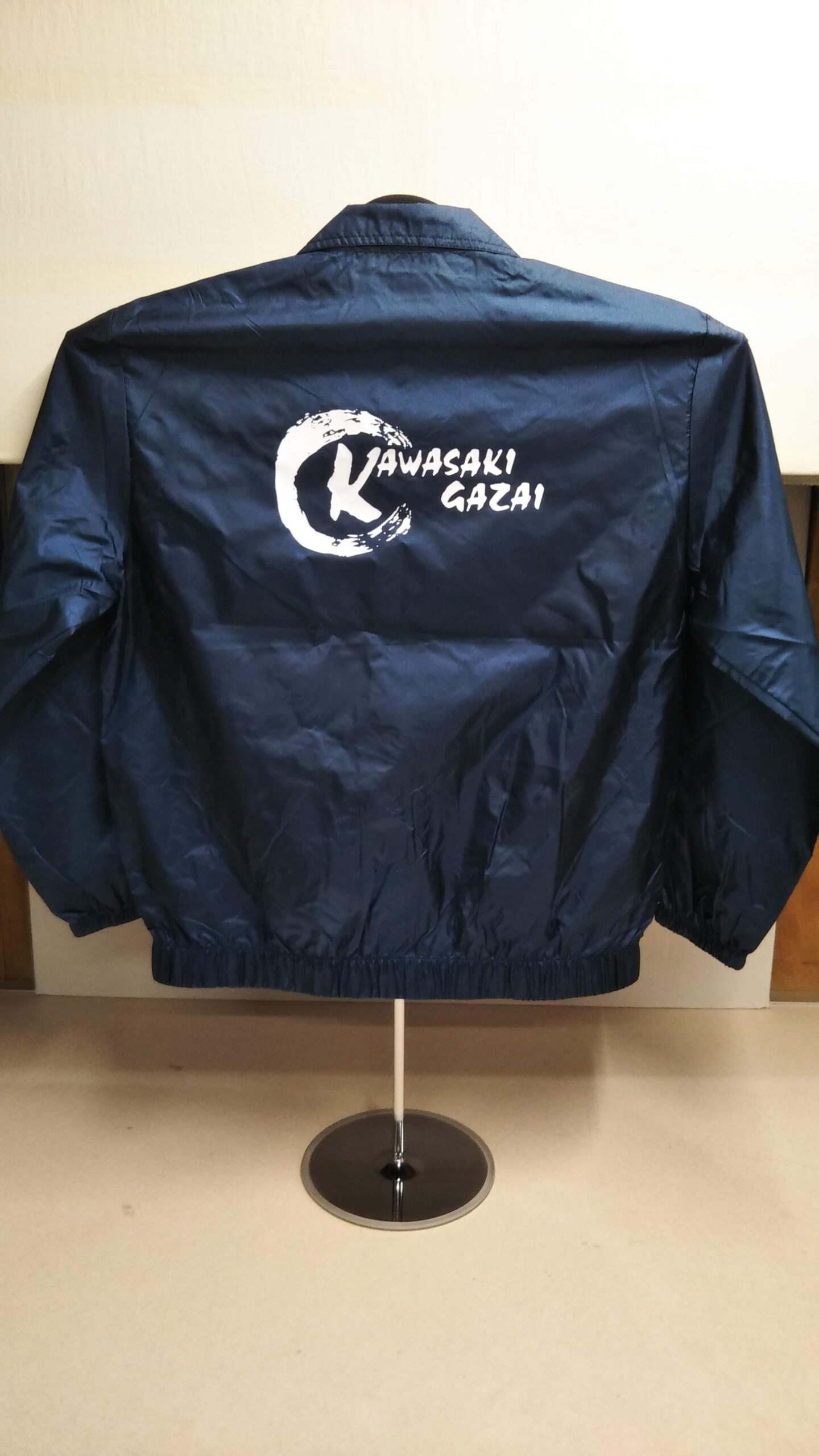 「KAWASAKI GAZAI」オリジナルブルゾン制作事例 商品カテゴリ: 3 商品: 370 利用シーン: 加工位置: 背中 加工サイズ: 横:225mm×縦:120mm 加工方法: プリント カメオカからのコメント: