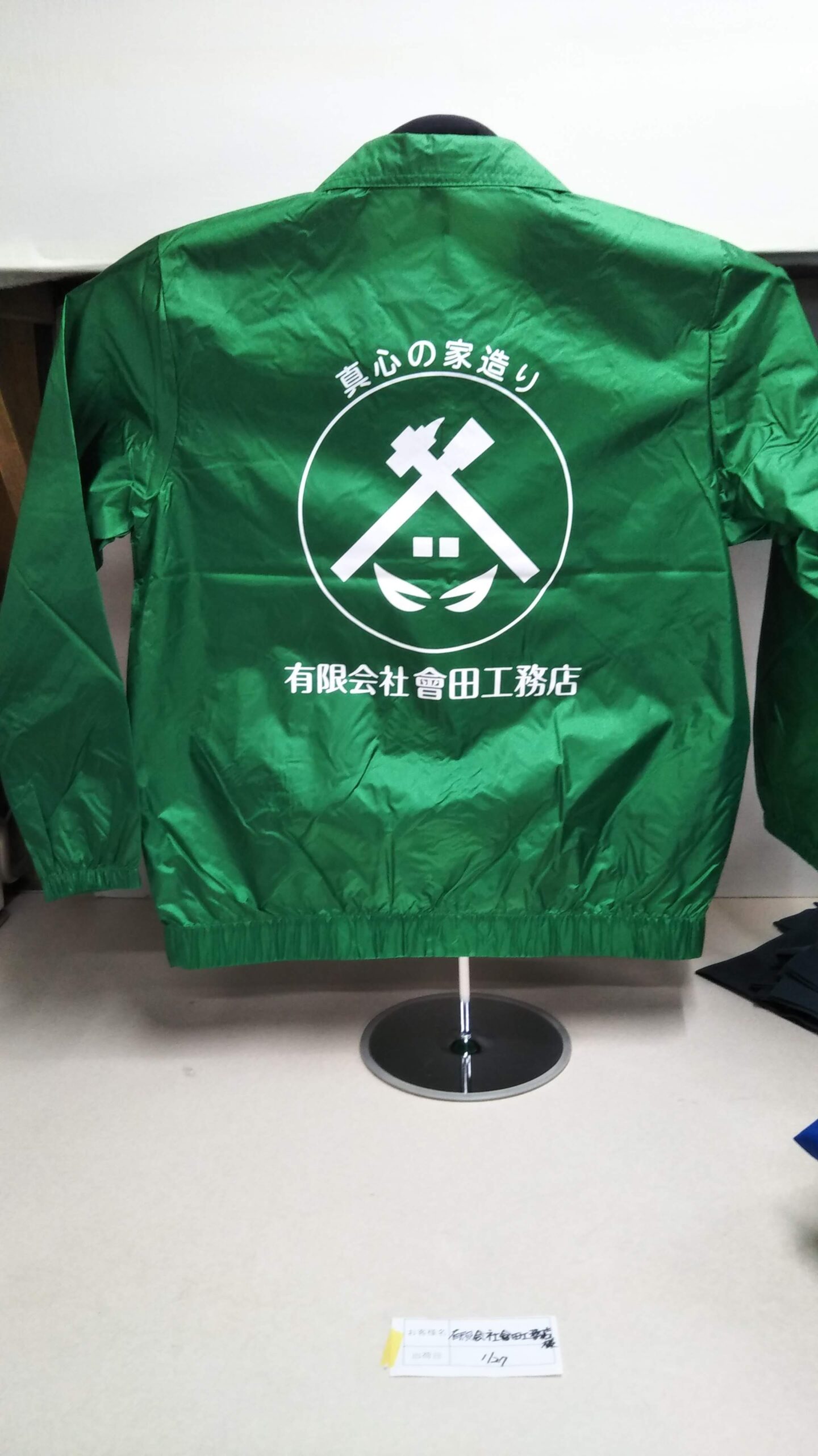 「真心の家造り」オリジナルブルゾン制作事例 DSC_1333 商品カテゴリ: 3 商品: 370 利用シーン: 加工位置: 左胸 背中 加工サイズ: 横:100mm×縦:74mm・横:260mm×縦:291mm 加工方法: プリント カメオカからのコメント: