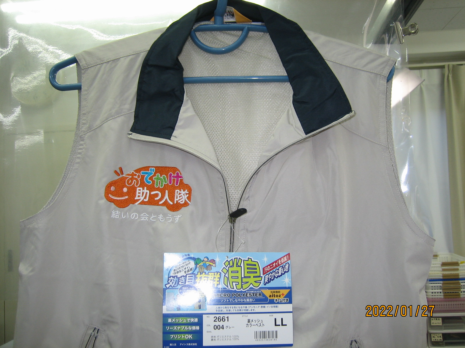 「おでかけ助っ人隊」オリジナルベスト制作事例 商品カテゴリ: 3 商品: 386 利用シーン: 130 加工位置: 右胸 加工サイズ: 横:110mm×縦:70mm 加工方法: 刺繍 カメオカからのコメント: カラフルでとっても豪華な刺しゅうデザインです。刺しゅうは衣類に直接縫い込むので塗りつぶしが多くてもはがれる心配が無くユニフォームには最適な加工方法です。