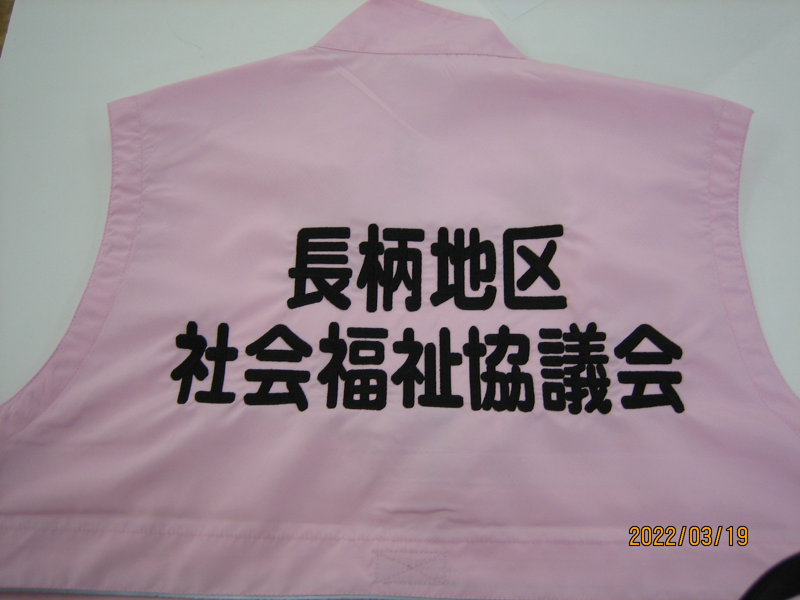 「長柄地区社会福祉協議会」オリジナルベスト制作事例 商品カテゴリ: 3 商品: 379 利用シーン: 加工位置: 背中 加工サイズ: 横:300㎜×縦:120㎜ 加工方法: 刺繍 カメオカからのコメント: