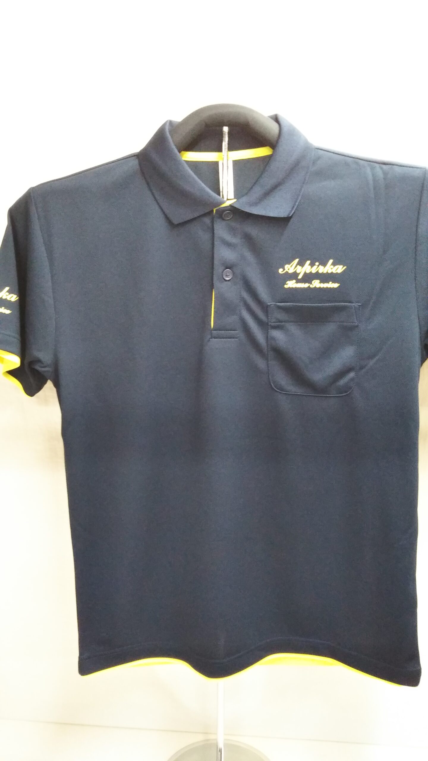 「Arpirka スクリプトロゴ」オリジナルポロシャツ制作事例 DSC_0043 DSC_0041 DSC_0044 商品カテゴリ: 4 商品: 524 利用シーン: 加工位置: 左胸・右袖 加工サイズ: 左胸・右袖/横:80mm×縦:33mm 加工方法: プリント カメオカからのコメント: 00339-AYP ドライレイヤードポロシャツの左胸と右袖にオリジナルプリントを入れました。細かい文字ですがきれいにプリントをすることができました。プリント色はポロシャツの切り返し色に合わせています。