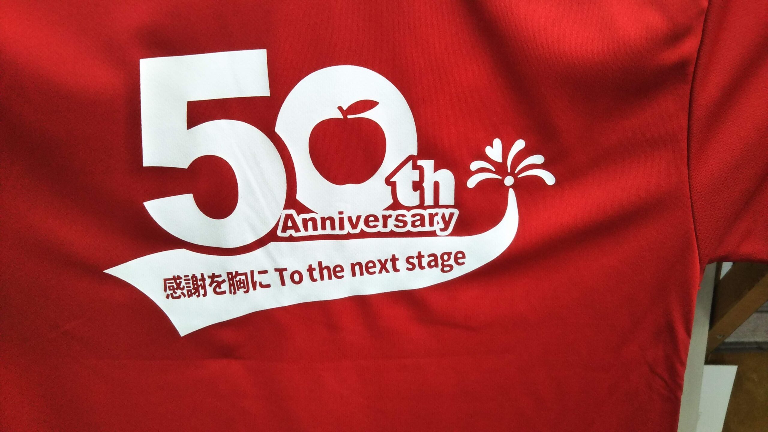 「50th Anniversary」オリジナルポロシャツ制作事例 商品カテゴリ: 4 商品: 490 利用シーン: 加工位置: 背中 加工サイズ: 横:280㎜×縦:165㎜ 加工方法: プリント カメオカからのコメント:
