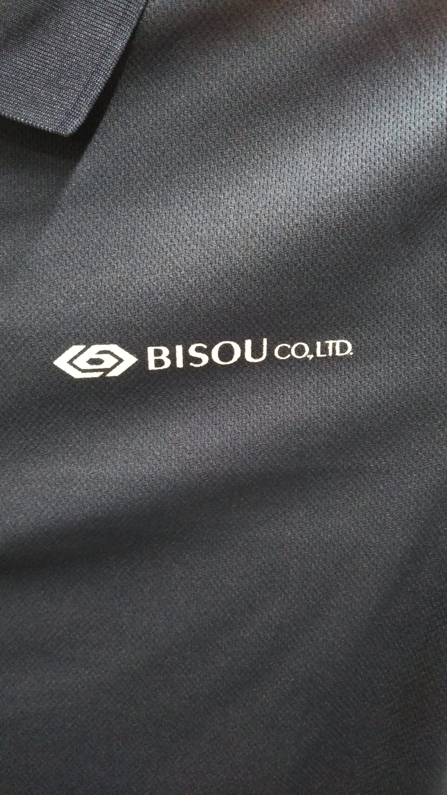 「BISOUco.,ltd」オリジナルポロシャツ制作事例 DSC_4714 商品カテゴリ: 4 商品: 504 利用シーン: 加工位置: 左胸 加工サイズ: 横:100㎜×縦:11㎜ 加工方法: プリント カメオカからのコメント: