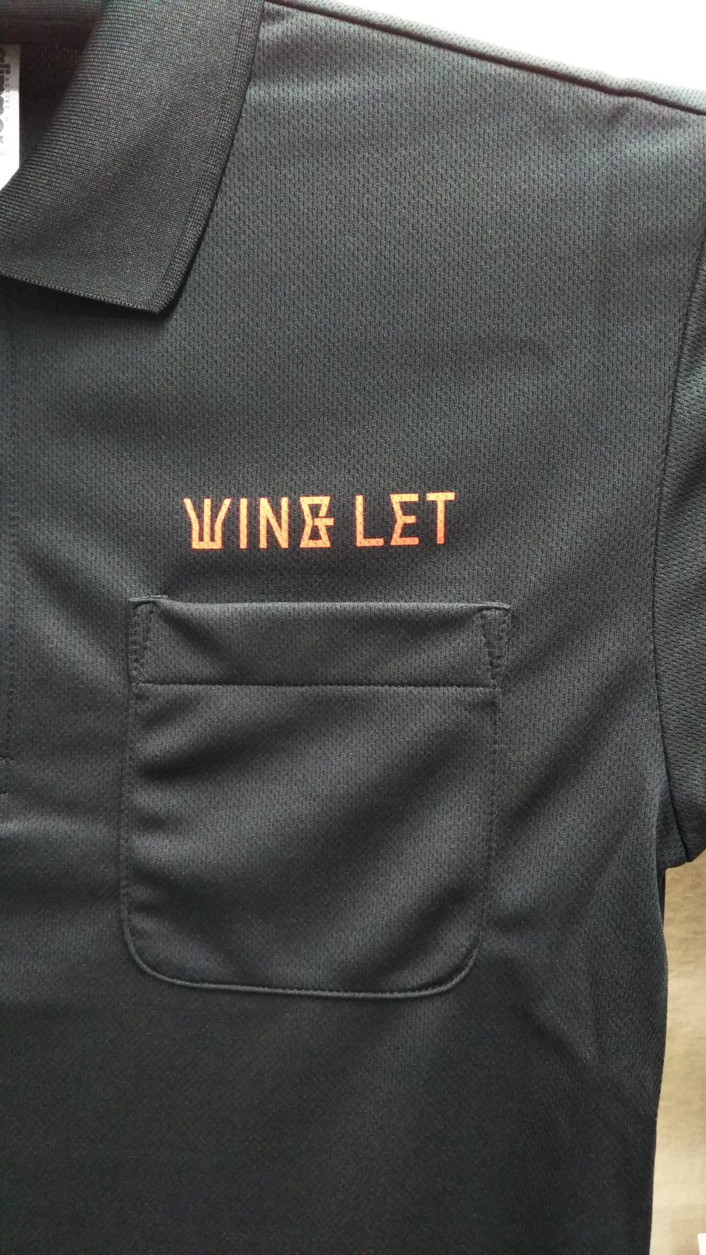 「WING LET」オリジナルポロシャツ制作事例 商品カテゴリ: 4 商品: 503 利用シーン: 加工位置: 左胸 加工サイズ: 横:80㎜×縦:14㎜ 加工方法: プリント カメオカからのコメント: