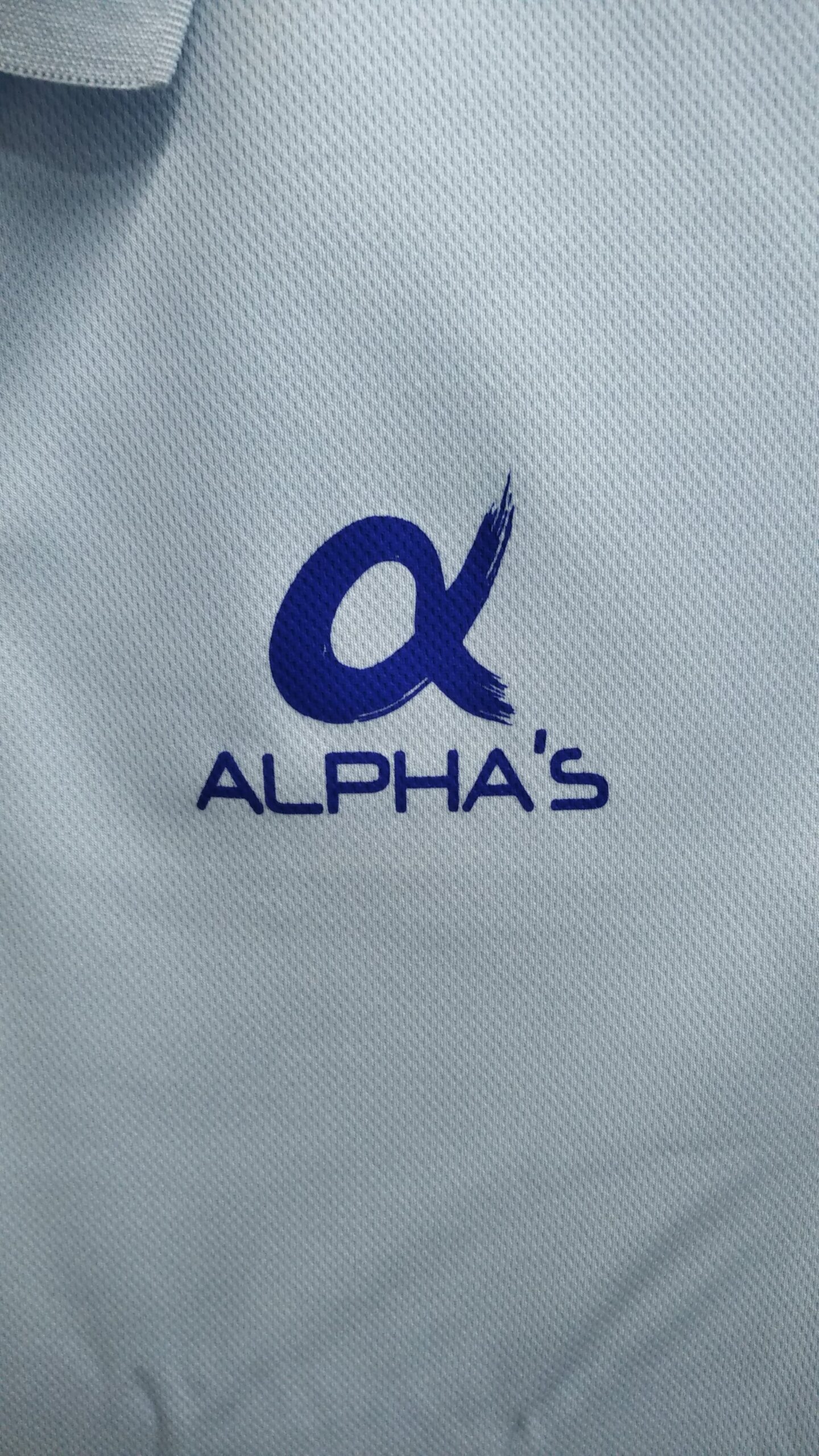 「αALPHA’S」オリジナルポロシャツ制作事例 DSC_5172 商品カテゴリ: 4 商品: 504 利用シーン: 加工位置: 左胸 加工サイズ: 横:80㎜×縦:66㎜ 加工方法: プリント カメオカからのコメント:
